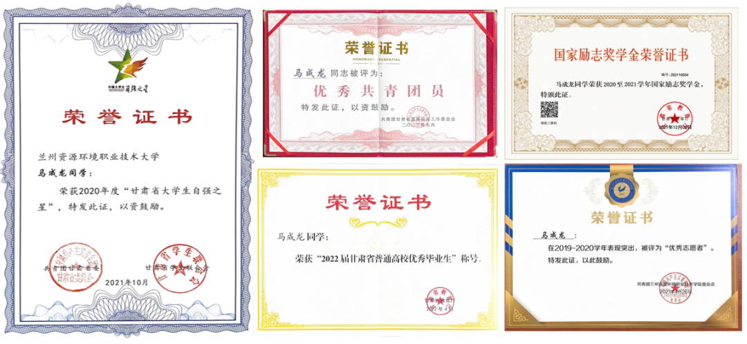 “青年之文明,奋斗之文明”,这是一直鼓励马成龙的一句话。他凭借着自身的刻苦努力,在校期间获得了20余项国家级、省级荣誉。