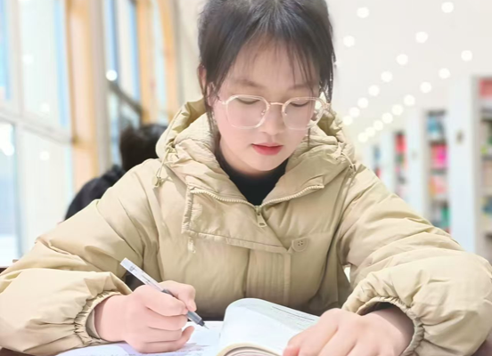 做决定是一瞬间的事情,但决定背后的坚持却要付出常人难以想象的努力。“只有不停追逐,才能走的更远”没有丝毫迟疑付雪莉走上了研究生备考之路,回想起复习的时光她坦言,英语是她的薄弱项当初为了备考英语四级她每天坚持背单词、朗诵课文并通过不断刷题巩固记忆最终以高分通过了英语四级考试,但是考研英语远比四级要难很多,为了能够顺利上岸付雪莉为自己制定了严苛的时间表,每天7点半起床8点准时坐在书桌前开启长达7小时的英语攻坚,2小时狂背单词上午剩余时间再加下午总共4小时精做3-4篇考研阅读并听网课拆解,逐句分析长难句梳理解题逻辑,晚上2小时复盘错题,总结生词将每一篇文章“吃透嚼烂”“英语没有捷径,只有重复和坚持”。那些密密麻麻标注着翻译和笔记的真题卷见证她完美的蜕变,专业课与政治的学习同样有条不紊,凭借扎实的专业基础通过框架梳理和刷题巩固知识点在这两门课上她倒节省了不少时间也做到了事半功倍。