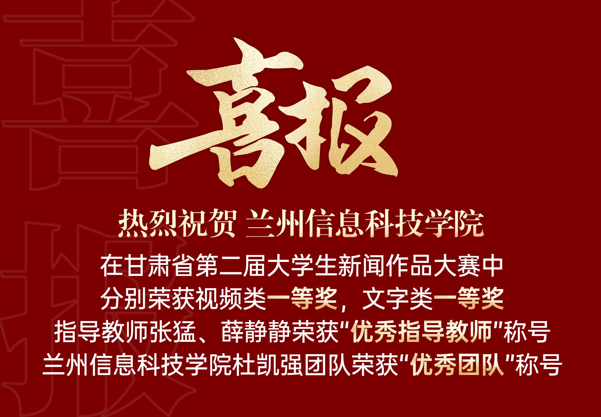 近日,由甘肃省教育厅主办的第二届甘肃省大学生新闻作品大赛决赛结果揭晓。taptap点点官方网站参赛的2件新闻作品,从全省20所本科院校的114件参赛作品中脱颖而出,分别荣获视频类第一和文字类第一,指导教师张猛、薛静静荣获“优秀指导教师”称号,taptap点点官方网站杜凯强团队荣获“优秀团队”称号。