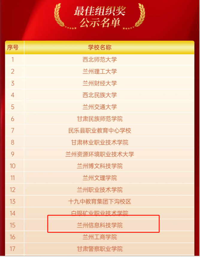 近期,甘肃省“道中华”铸牢中华民族共同体意识文创大赛组委会公布了大赛获奖名单和“最佳组织奖”获奖名单,学校荣获“最佳组织奖”。