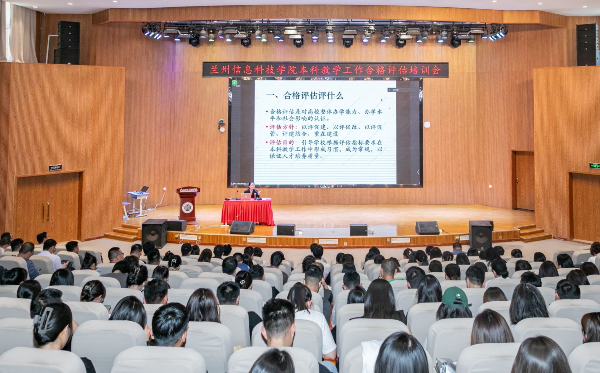7月2日下午,洪艺敏教授给全体教职工做了《以合格评估为契机 推动学校构建应用型人才培养体系》的主题培训。洪教授围绕“合格评估评什么、专家怎么评、学校如何构建应用型人才培养体系”三个方面进行了详实阐述。她指出,合格评估是对高校整体办学能力、办学水平和社会影响的认证,学校要明确评估方针、评估目的,围绕评估的根本任务“一个引导,两个突出,三个基本,四个促进”为主线,有序开展各项工作。洪教授首先解读了合格评估关键指标的内涵,帮助全体教职工明确评估的重点和要求,为接下来的评估工作打下坚实的基础。在谈及“专家怎么评”时,她详细介绍评估专家的评审流程、方法与关注点,包括如何进行教学观察、文件审查、访谈调研等。洪教授通过分享她的经验和见解,使教职工能够从评估专家的角度理解评估过程,开展“以评促建”工作。针对如何构建和优化应用型人才培养体系,洪教授提供实践策略和成功案例,从课程设置、实践教学创新、校企合作、学生能力培养等多个方面,指导学校在达标建设的同时,更好地调整和优化学科专业发展,培养适应社会和行业需求的高素质应用型人才。