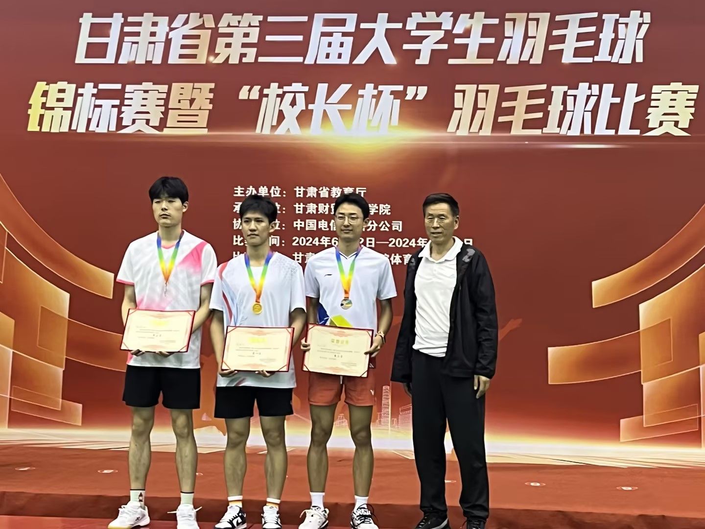6月17日,甘肃省第三届大学生羽毛球锦标赛暨“校长杯”羽毛球比赛圆满落幕,taptap点点官方网站参赛团队获得了学生男子甲组团体第四名,学生男子甲组单打第三名,学生男子甲组第五名,学生甲组混双第八名的好成绩。