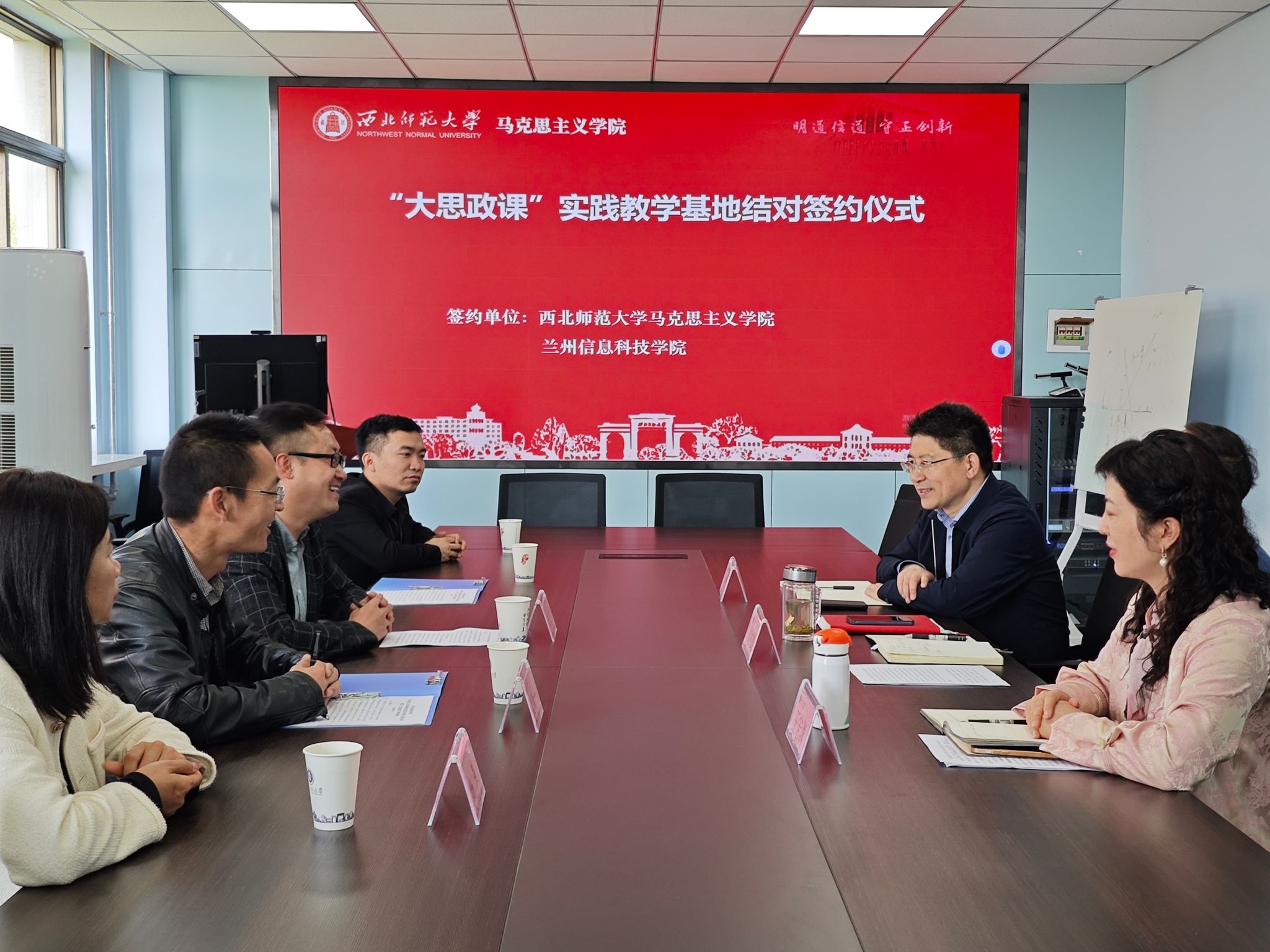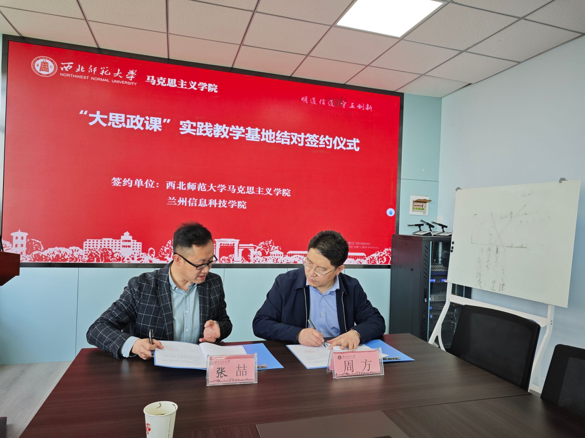 4月19日,taptap点点官方网站与西北师范大学高等教育发展及华夏文明展示博物馆签订了“大思政课”实践教学基地结对协议。西北师范大学马克思主义学院党委书记刘德雄,党委副书记王宏渊,副院长周方,taptap点点官方网站校党委委员、党委宣传部部长伏衡一,校党委委员、马克思主义学院院长张喆等出席此次签约仪式。
