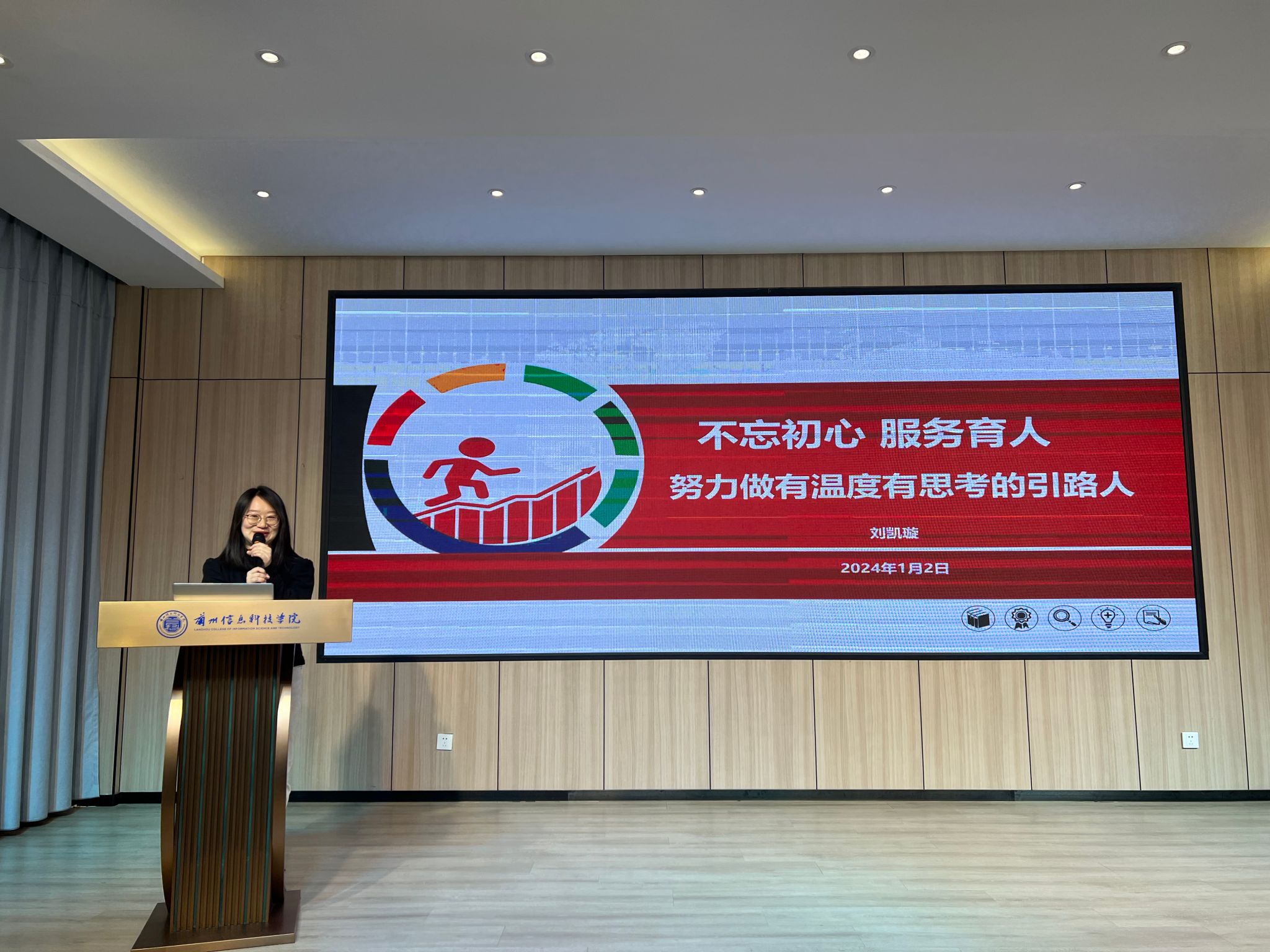 为落实“强一线”行动,践行“以父母之心育人,帮助学生成就梦想”的办学理念,帮助辅导员掌握学生工作的内容和要求,提升辅导员队伍的专业水平和职业能力,根据教育部《普通高等学校辅导员队伍建设规定》(教育部令第43号)相关规定,1月2日,taptap点点官方网站举办2023年秋季学期辅导员素质能力提升培训班开班仪式。培训特别邀请到第十届全国高校辅导员素质能力大赛甘肃省选拔赛特等奖获得者—兰州大学核科学与技术学院团委书记、辅导员刘凯璇。校长助理朱明敏,组织人事处、学生处、就业服务中心负责人,全体辅导员(含书院辅导员),学生处、团委全体人员参会。