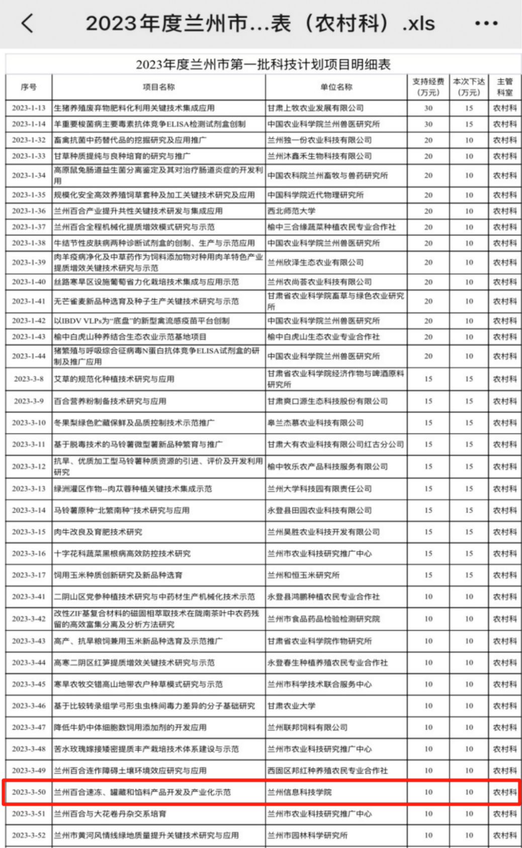 据悉,该项目旨在充分发挥兰州百合资源优势,为打造兰州百合特色产业链提供技术支撑,主要以地方特色农产品升级打造、解决农产品产业需求以及开发农产品新产品为问题导向,以食品科学与工程为支柱专业,以服务特色农产品产业链从加工到包装再到销售全产业链的发展为目标,融合化工工程与工艺、机械工程及其自动化、市场营销、财务管理等专业,形成服务甘肃特色农产品产业链工科与文科相互支撑、相互融合的专业集群。
