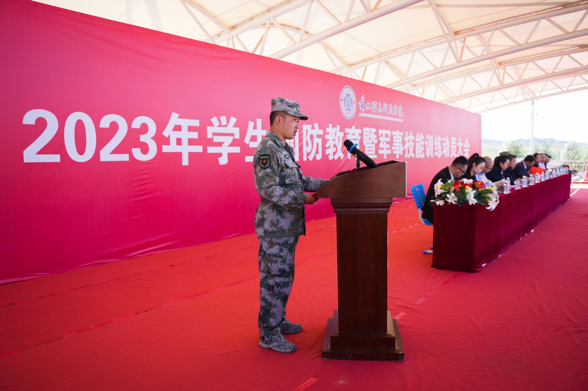 校长程兰华在讲话中指出,军训是大学生涯中的一门必修课程,也是学校教育教学工作的重要组成部分,更是大学生学习军队优良传统、培养艰苦奋斗精神和集体主义观念的大课堂,同学们要谨记习近平总书记的殷切嘱托,把个人理想融入强国梦、强军梦。她向全体参训学生提出三点期望:一是长志气,彰显青春担当;二是硬骨气,挺起精神脊梁;三是强底气,开创美好未来。作为新时代青年要树牢“四个意识”,坚定“四个自信”,以实现中华民族伟大复兴为己任,不断增强做中国人的志气、骨气和底气。