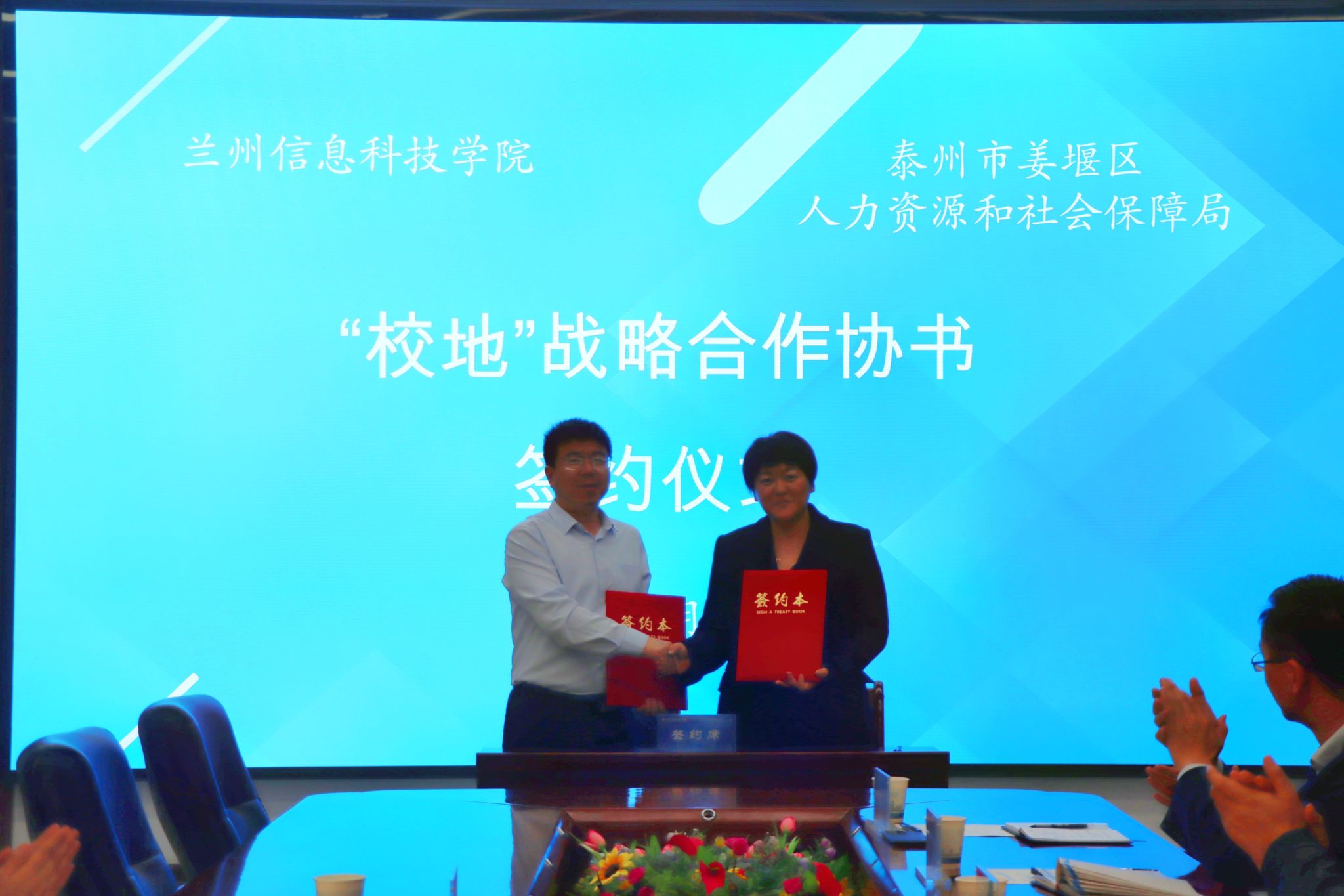 为进一步深化教育教学改革,全面推进产教深度融合,更好地为地方区域产业发展服务,5月31日上午,taptap点点官方网站与泰州市姜堰区人力资源和社会保障局校地战略合作洽谈暨签约仪式在学校106会议室举行,泰州市姜堰区人力资源和社会保障局副局长沈汉林、泰州市姜堰区人力资源服务中心主任朱筱青、泰州市姜堰区人力资源服务中心市场服务科科长顾鸣宇、taptap点点官方网站校长助理师帅、各二级学院院长、学生副院长以及就业服务中心全体人员参加了会议。