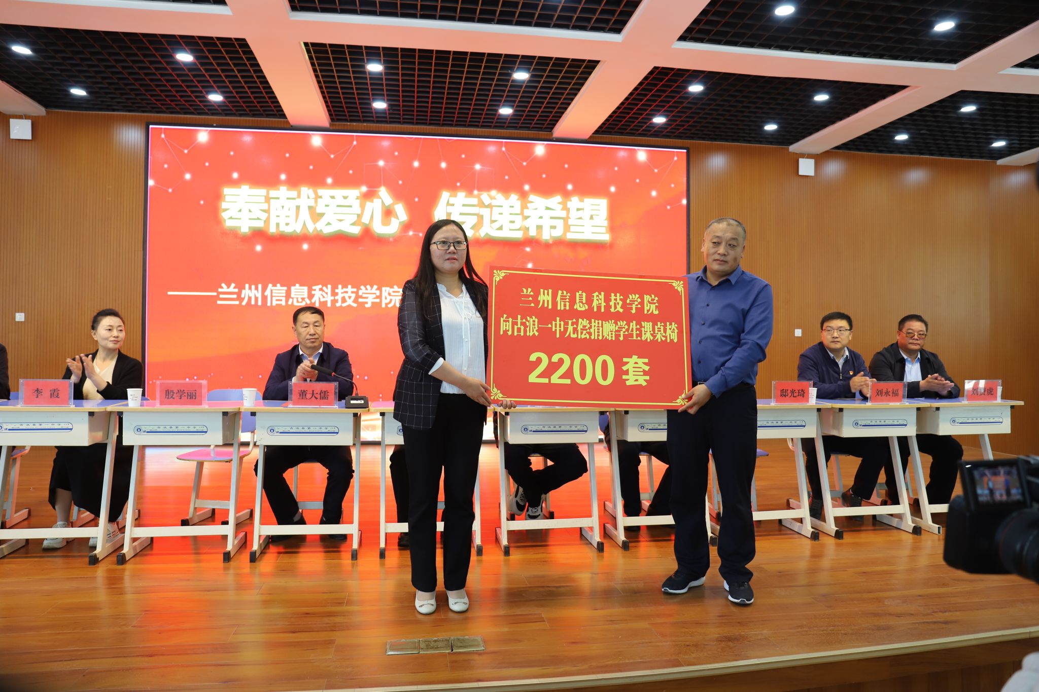 捐赠仪式上,殷学丽代表学校向古浪一中递交了课桌椅捐赠的牌匾,学校向古浪一中捐赠课桌椅共计2200套,用于更换所有老旧课桌椅,改善学生学习条件。