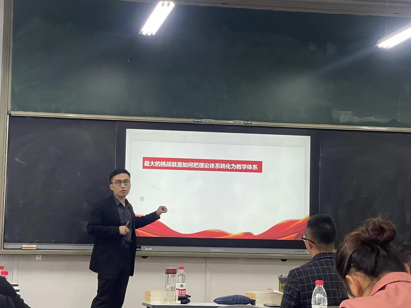 随后,课程管理责任教研室马克思主义学院原理概论课教研室按照教育部社科司发布通过全国高校思政课教师网络备课平台发布的教学课件,遴选其中五个专题并选派5名思政课教师开展了专题教学分享。教研室主任陈伟专题分享了《习近平新时代中国特色社会主义思想概论》课程的开设目的、课程框架体系等;胡小燕副教授以“以新发展理念引领高质量发展”为主题进行了专题分享;巨澜副教授以“社会主义现代化建设的教育、科技、人才战略”为主题进行了专题分享;张琼苑老师和习璐老师分享的主题分别为“坚持党的全面领导”、“全面深化改革”。专题教学分享的同时,参会教师分别就教学体系构建、教学重难点分析、教学方法使用、教学案例选用和教学环节设计等进行了充分研讨。