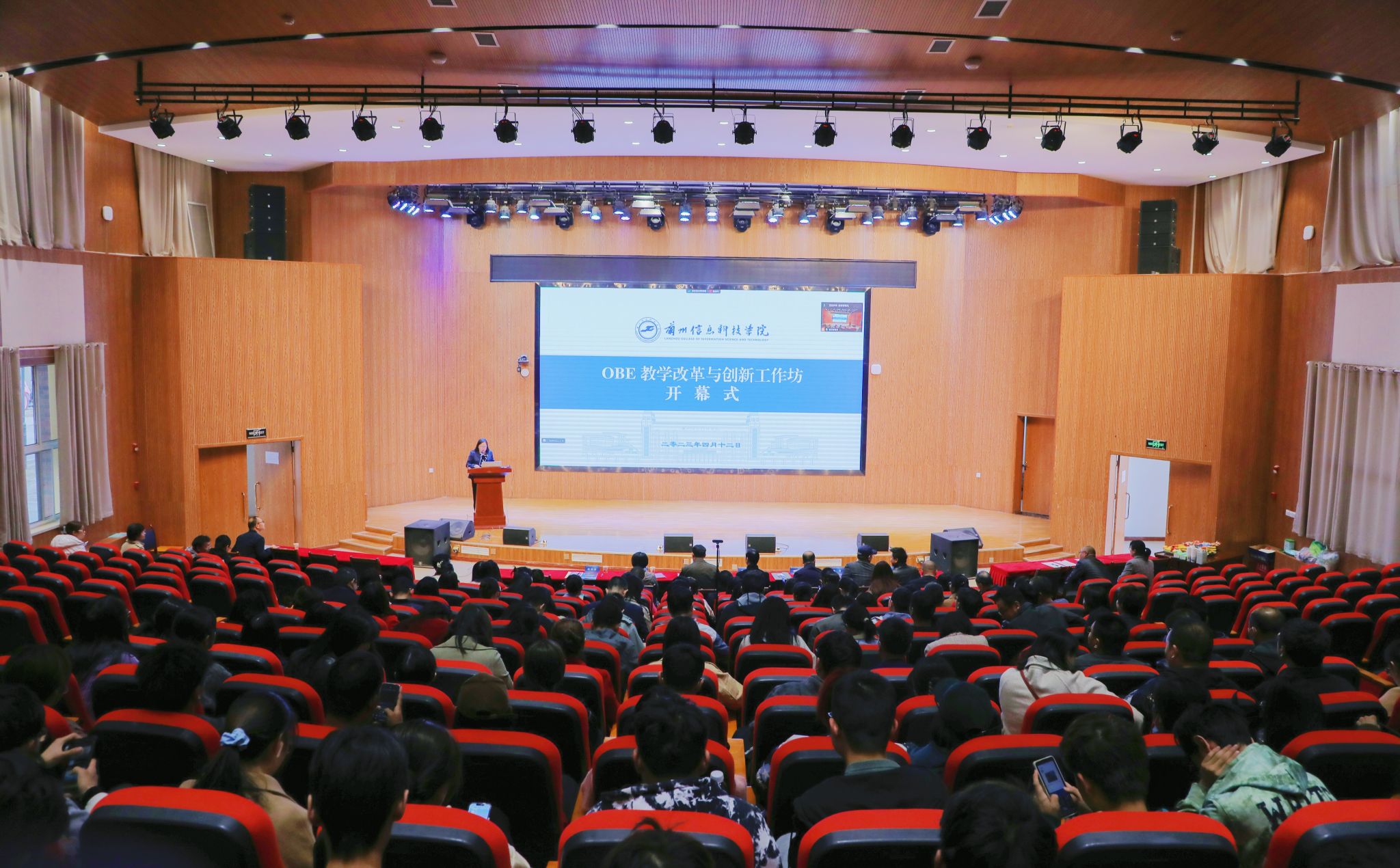 开幕式结束以后,学校邀请了来自东北大学的徐林教授为全体教师做了工作坊的首场讲座—— “从三级专业认证模式谈本科专业建设与人才培养方案制定”。徐教授从三级专业认证、成果导向(OBE)的设计理念、面向专业认证的一流本科专业建设、专业人才培养方案的设计思路与编制策略、案例分析等五个方面展开,对OBE理念的内涵进行了深入解读。徐教授指出,要把握成果导向教育的特点,找准人才培养的定位,坚持学生中心、产出导向、持续改进的核心理念,按照三级专业认证标准,反向设计教学导向,提高培养方案的科学性,构建基于“五育并举”的专业人才培养方案。徐教授结合具体案例,引导现场教师积极思考,明确当前OBE理念推行过程中存在的问题及解决方法,合理设置培养方案、教学大纲。
