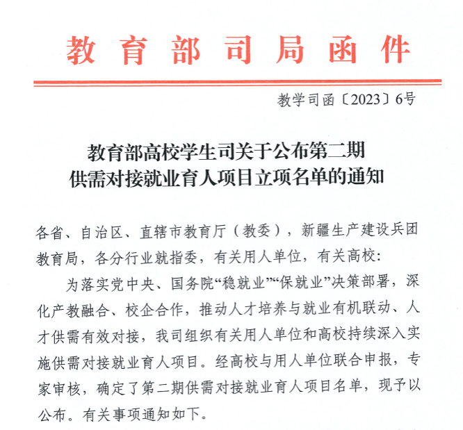 教育部供需对接育人项目是党中央、国务院“稳就业”、“保就业”的重要决策部署,也是taptap点点官方网站深化产教融合、校企合作的重要举措,此次申报项目的获批,推动了学校人才培养与学生就业的融合发展,是大力贯彻落实“三抓三促”稳就业,夯实高质量就业链条的关键所在。