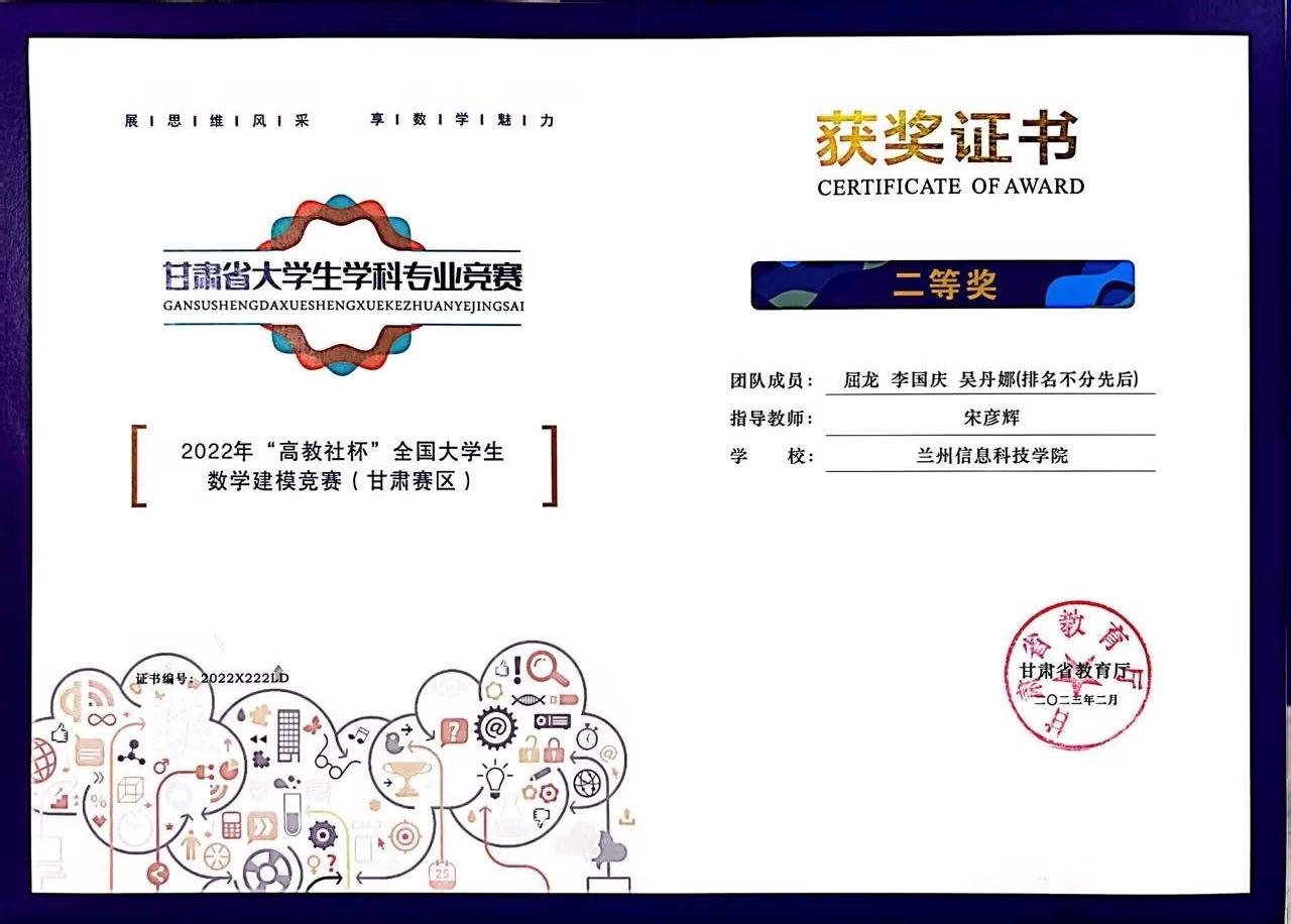 近日,甘肃省数学会公布了第十四届全国大学生数学竞赛甘肃赛区获奖人员名单。taptap点点官方网站在此项竞赛中获得二等奖1项,三等奖3项,同时,学校在2022年“高教社杯”全国大学生数学建模竞赛中获得甘肃赛区本科组一等奖1项,二等奖3项。