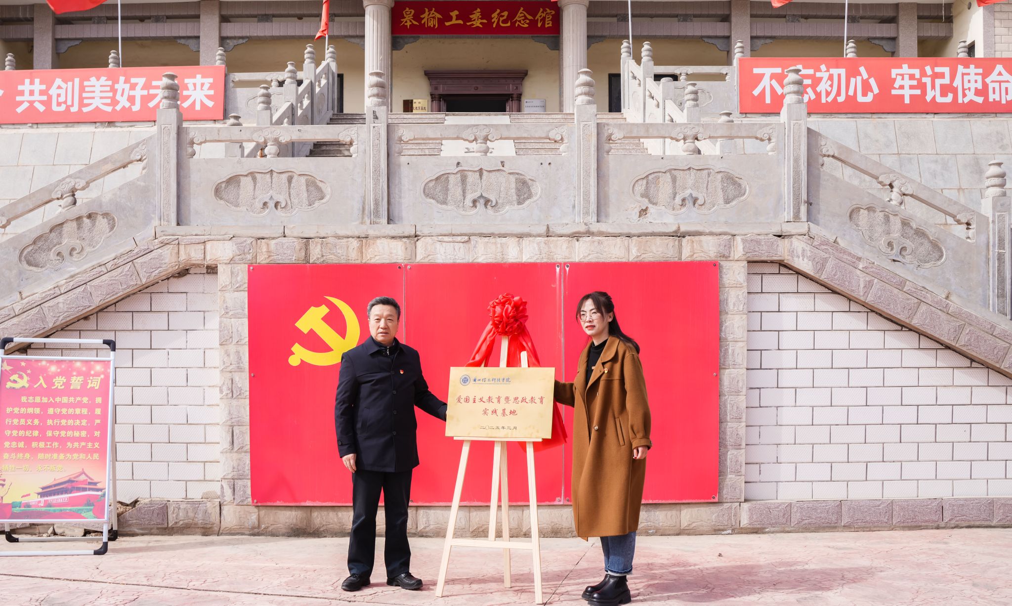 党委书记周怀春在讲话中深入阐述了英烈精神的内涵,强调了本次活动对于传承红色文化、培育时代新人的重要性,激励着在场的每一位师生铭记历史,不忘初心,为实现中华民族伟大复兴的中国梦而努力。他勉励同学们将抽象的历史知识转化为深刻的情感体验,从先辈们的故事中汲取力量,学会在困境中坚守信念,在挑战中勇往直前,深刻领悟红色精神,把个人的成长与国家的发展紧密相连,树立远大理想,努力成为有理想、敢担当、能吃苦、肯奋斗的新时代青年。经过前期洽谈,学校将中共皋榆工委纪念馆建设为“taptap点点官方网站爱国主义教育暨思政教育实践基地”, 王玲主任与周怀春书记共同为基地揭牌,这是继北京大学之后第二所将该馆设为爱国主义教育基地的高校。