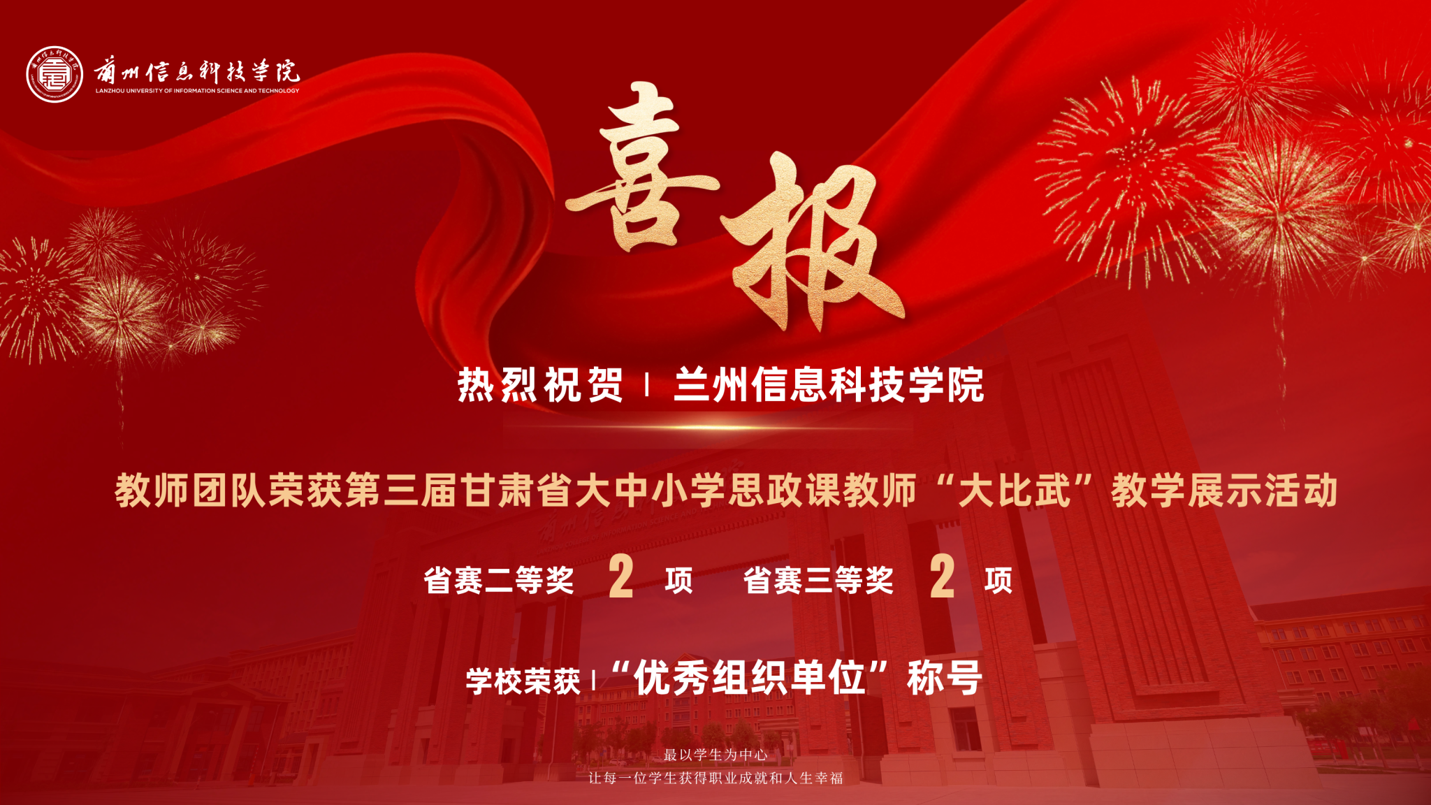 本次“大比武”教学展示活动由中共甘肃省委教育工作委员会、中共甘肃省委宣传部主办,经过前期遴选推荐与资格审核,来自全省大中小学的235名思政课教师参加最终决赛。在展示活动中,参赛教师们围绕教学设计、内容、方法、课堂组织及课堂效果等多方面内容,进行了全面展示。学校高度重视此次比赛,精心选派多位专业教师参与,并全力保障赛事活动,备赛期间,选手通过集体备课与个性化指导相结合的形式,围绕教学内容设计、方法创新等开展专题研讨,并由资深教师进行一对一辅导进一步优化教学设计,助力参赛教师显著提升教学能力。通过比赛,切实提升了教师的教学能力与专业素养,达到了“以赛促教”的目标。