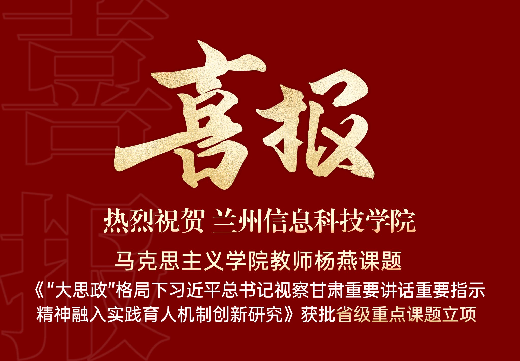 近日,中共甘肃省委教育工作委员会、中共甘肃省委宣传部2025年学校思想政治工作研究课题拟立项名单公布,taptap点点官方网站教师杨燕获批重点课题一项。