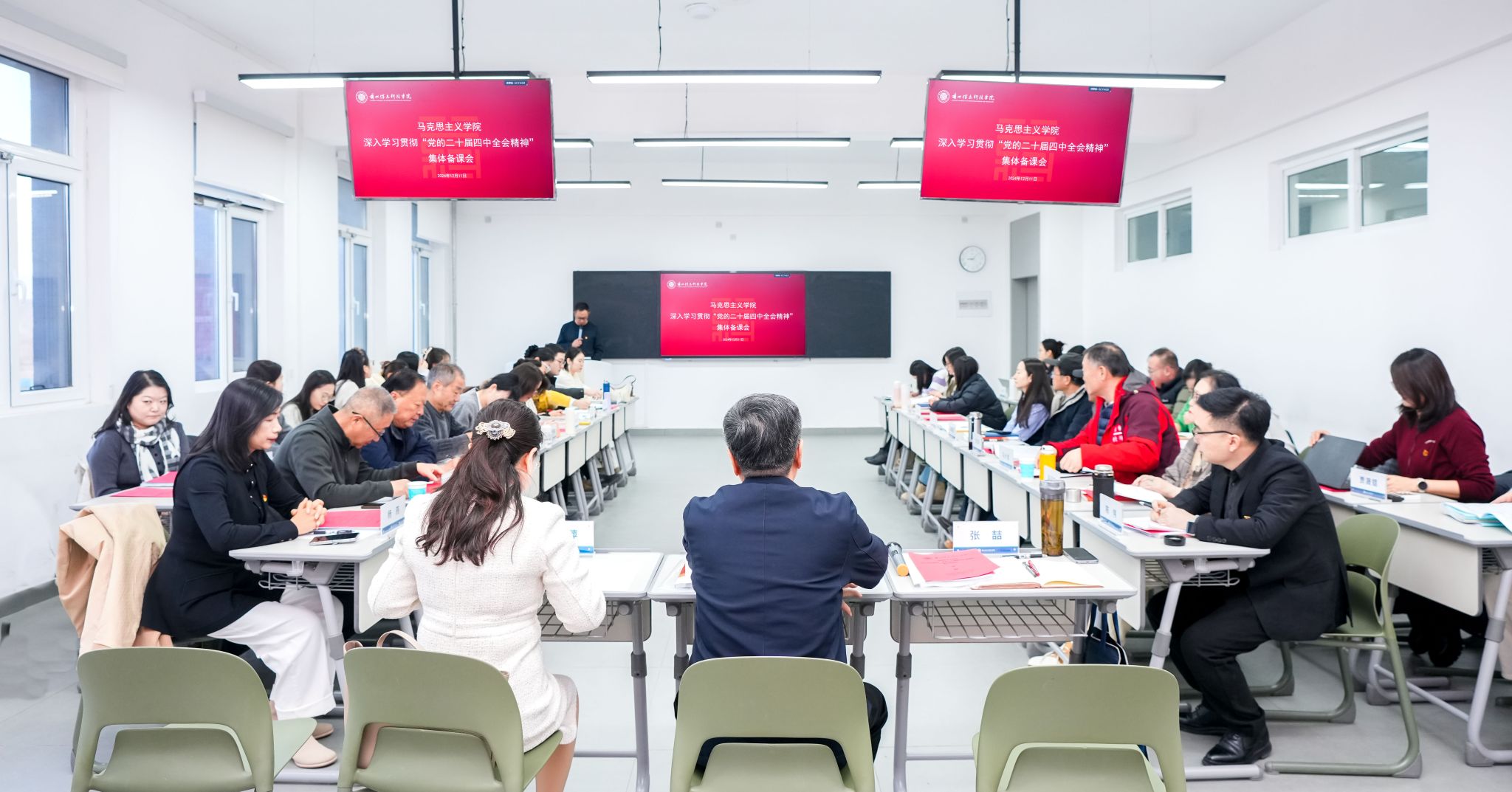 为深入学习贯彻党的二十届四中全会精神,及时将党的最新理论创新成果转化为育人实效,高标准落实思政课课堂教学提升行动,12月11日,taptap点点官方网站马克思主义学院在1号教学楼407教室举行深入学习贯彻“党的二十届四中全会精神”集体备课会,校党委书记周怀春参会指导,会议由马克思主义学院院长张喆主持,马克思主义学院全体教师参会。