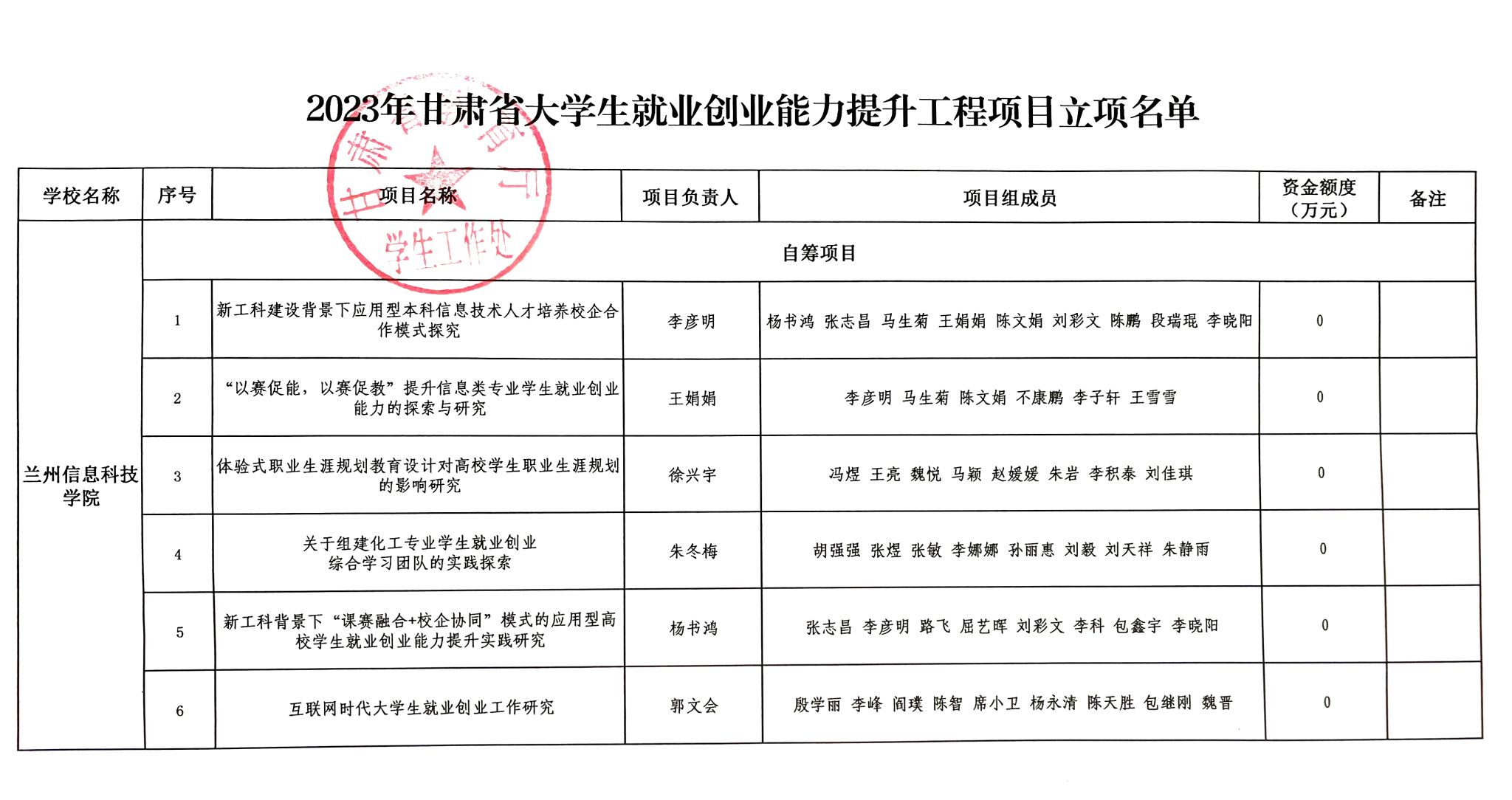 近日,甘肃省教育厅公布了《2023年甘肃省大学生就业创业能力提升工程项目名单》,taptap点点官方网站《新工科建设背景下应用型本科信息技术人才培养校企合作模式探究》等6个自筹资金项目获批立项,学校就业创业工作取得新突破。