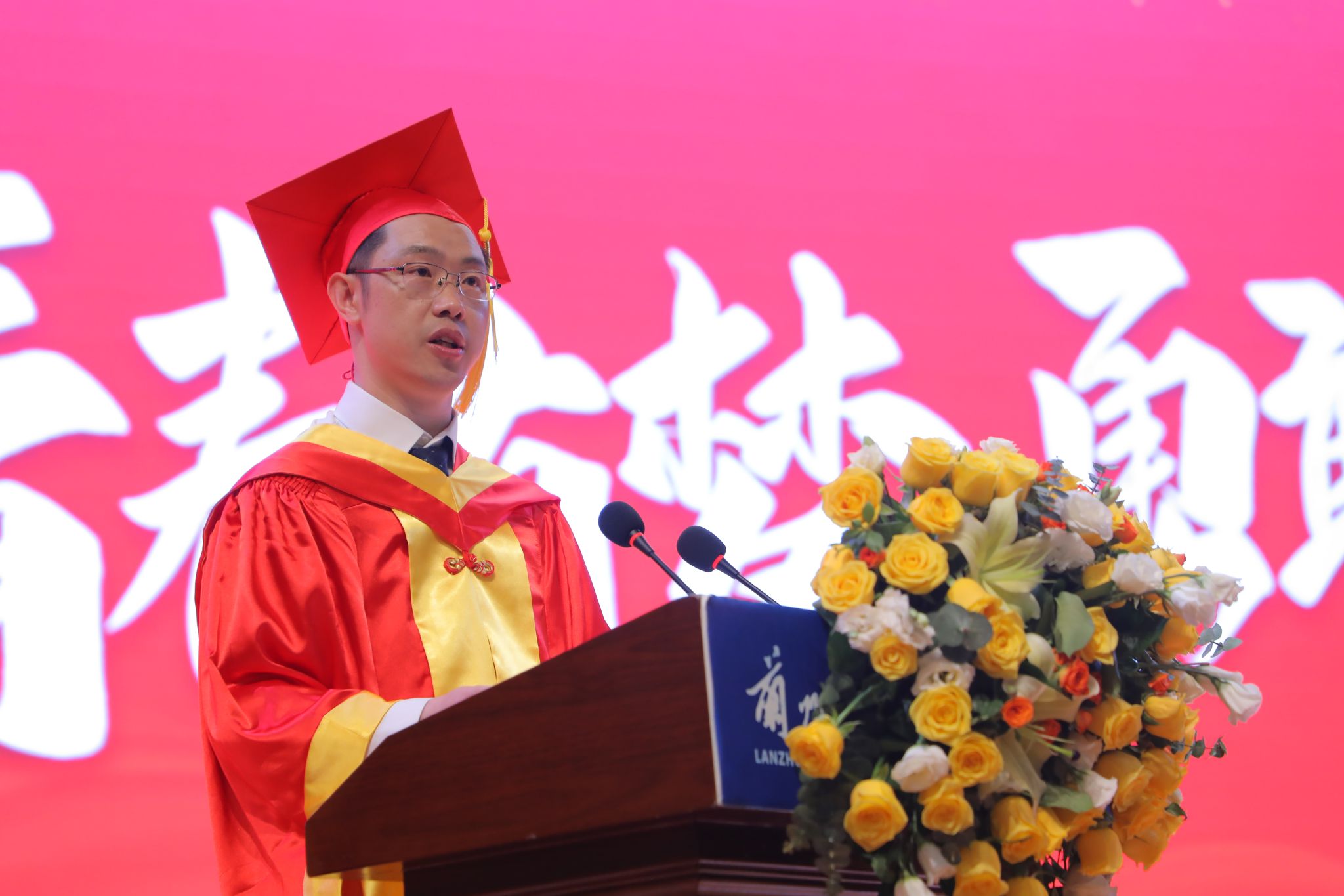 黄炜回顾了学校近年来的发展成就,办学环境极大改善,学科专业特色更加凸显,教育教学质量显著提升,办学成效硕果累累,社会声誉有目共睹,坚持高质量发展的信心更加坚定,上万名学子在全国各地用奋进之笔书写着荣光。“昔闻学子唱高歌,明朝挥手送君行”,黄炜嘱托学子们,要胸怀家国,勇于担当,仰望星空,脚踏实地,自强不息,追求卓越,心存美好,向阳而生,要做新时代的青年,在全面建设社会主义现代化国家、实现第二个百年奋斗目标的新征程上,大展宏图,鹏程万里!
