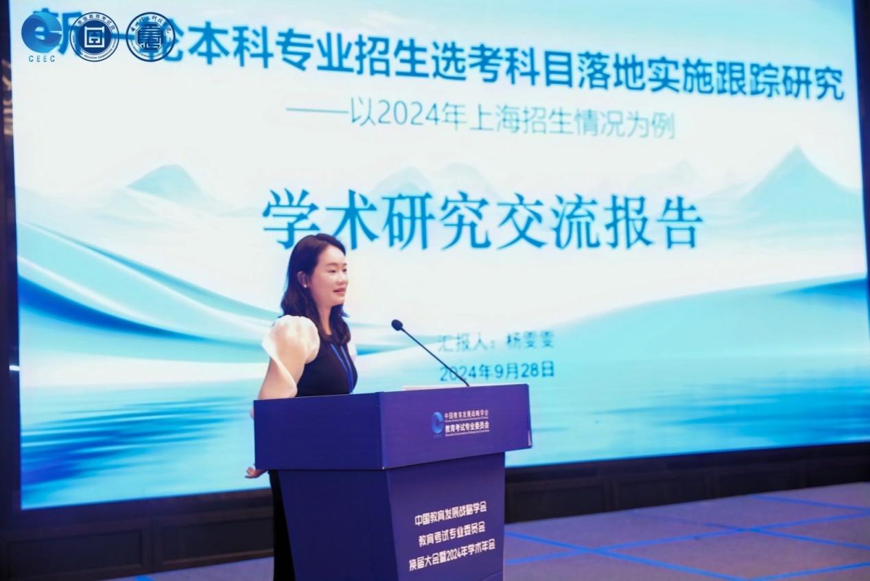 学术论坛年会上,上海市教育考试院杨雯雯、浙江省教育考试院李金波、甘肃省教育考试院李德铭、中国教育战略发展学会教育考试专业委员会事业发展部李勇分别围绕新一轮本科专业招生选考科目落地实施、学生科目选考和专业录取互动跟踪等研究,新高考综合改革实践与政策推进效果研究和人工智能大语言模型在高考命题中的应用研究,进行深入的探讨和剖析,专业精彩的学术报告受到与会代表的热烈反响。
