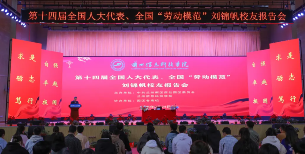 第十四届全国人大代表、全国劳动模范刘锦帆回校作宣讲。