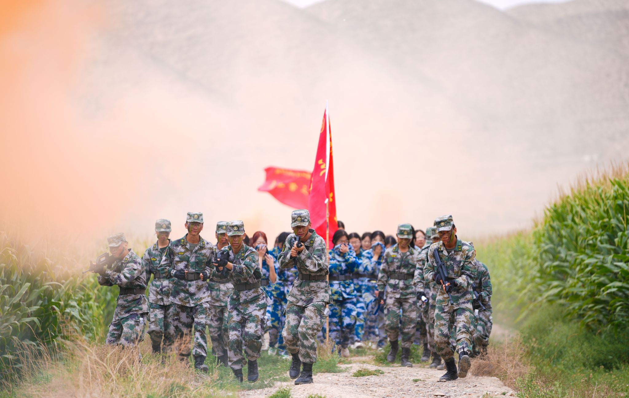 当天上午8时30分,在嘹亮的校歌声中,行军拉练正式启程。行军拉练出发点设在该校田径场,主路线沿着西岔园区公路、山路徒步,途中设置了疏散演练、枪支演练等环节,增加了行军拉练的考验力度。