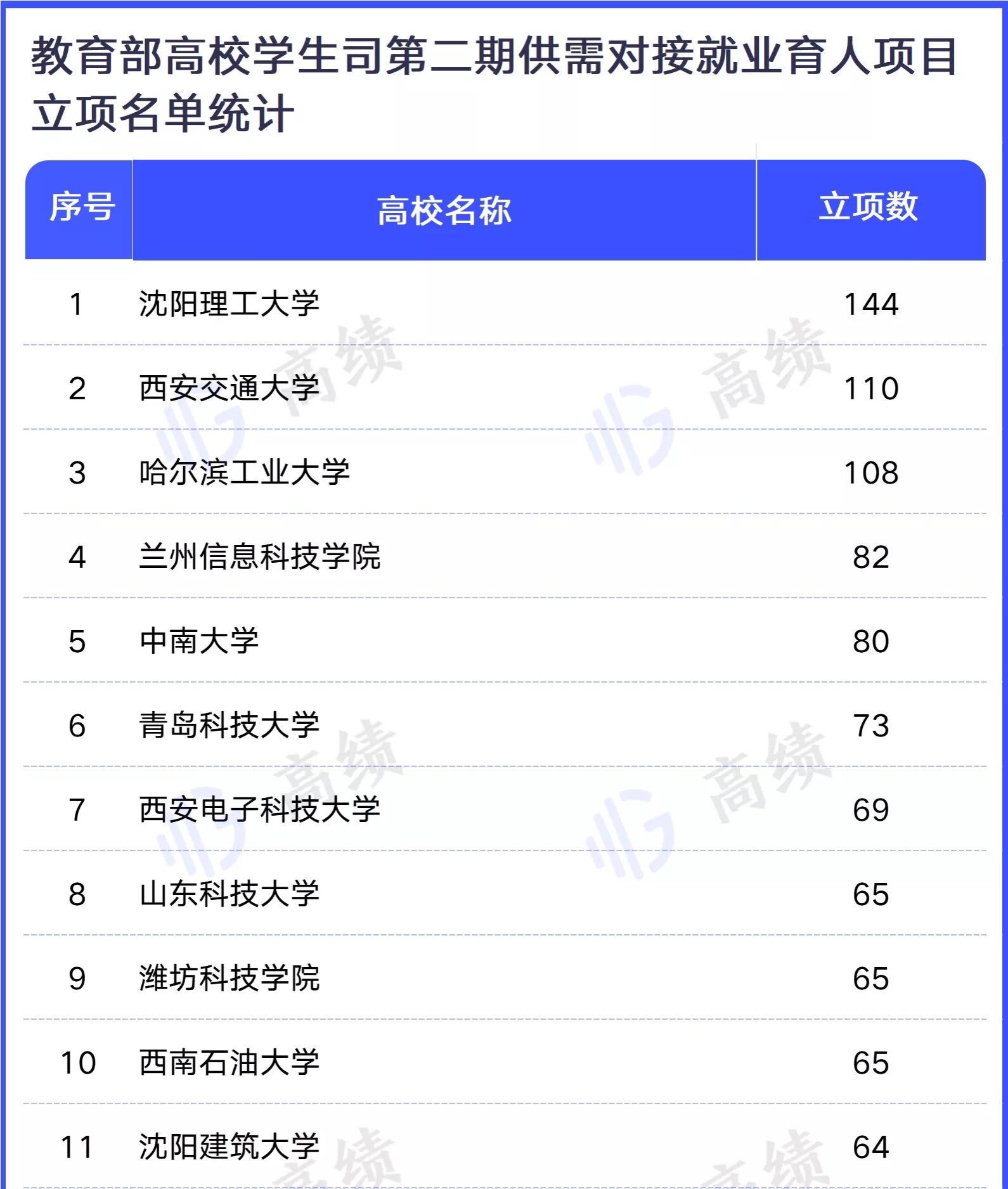 在这些高校中,我国中部地区的一些高校也获得了比较多的项目,比如中南大学、中南财经政法大学以及河南工业职业技术学院等高校。获得这个项目数量较多的高校中,不乏名校,也不乏一些专科院校,其实也完全能够理解,我国大学生中本科生遇到的就业问题,其实在专科阶段也存在,不过相对来说专科阶段的学生大多数在毕业前就掌握了一定的技术,就业相对没有那么困难而已。