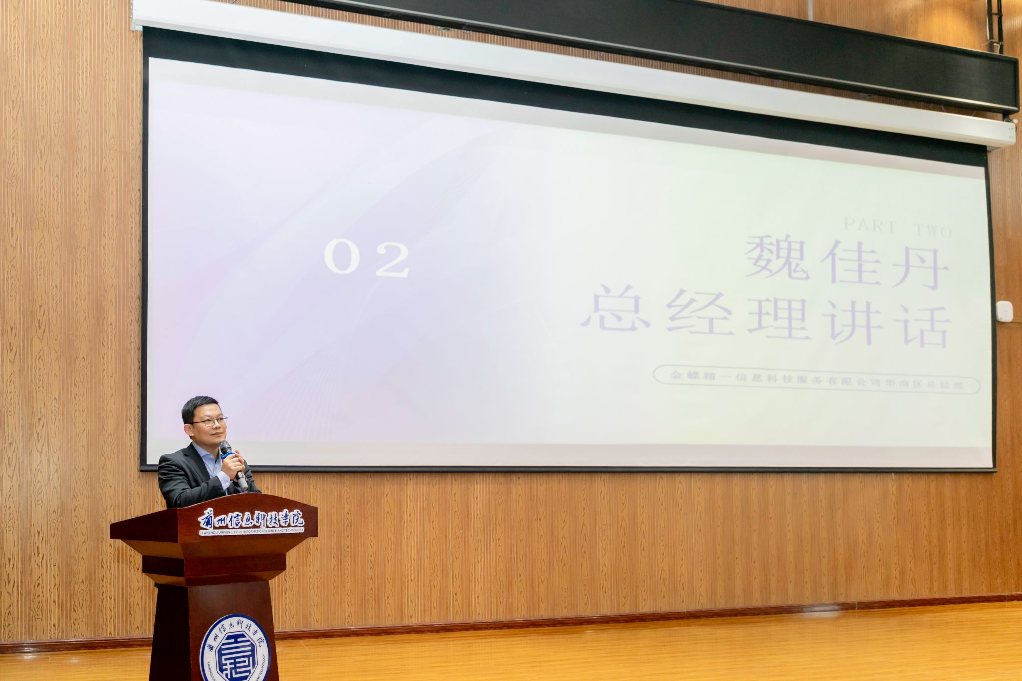 魏佳丹在致辞中指出,金蝶数智财务产业学院的开设不仅是校企合作的新里程碑,更是实践教育模式创新的具体体现。他鼓励同学们积极利用校企合作带来的平台优势,培养自己的数智化能力,成为推动产业数字化转型的栋梁之才。