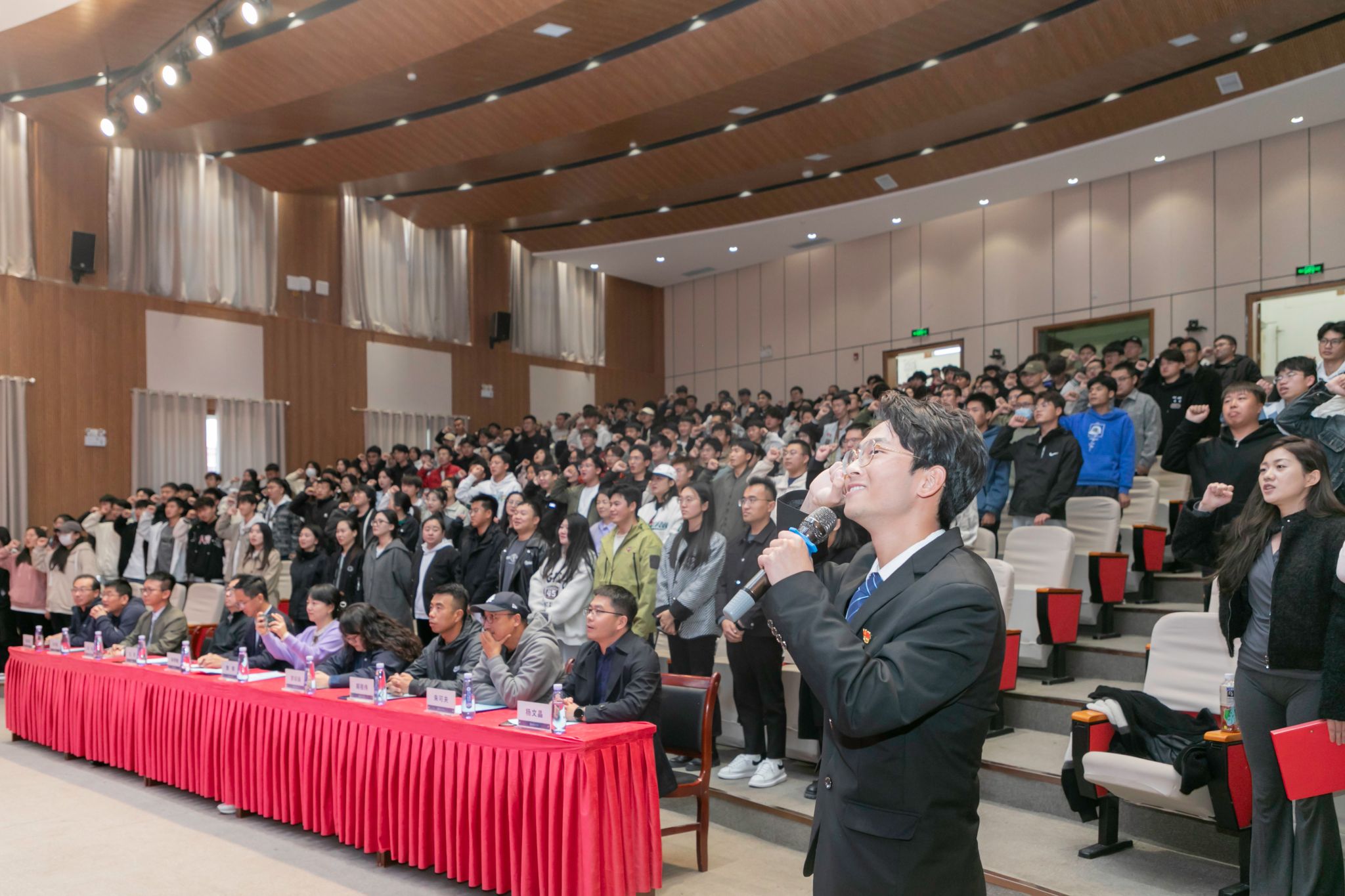 智能装备学院2021级机器人工程1班赵天赐同学带领全体考研学生庄严宣誓,许下“用鲜红的录取通知书回报父母,回报老师,回报学校”的铮铮誓言。