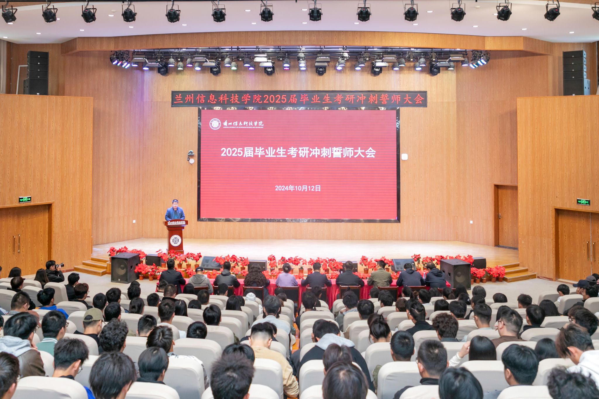 2025年全国硕士研究生招生考试网上预报名已经有序开展。10月12日,在距离2025届毕业生考研倒计时还有70天时,taptap点点官方网站在2号报告厅举行2025届毕业生考研冲刺誓师大会,进一步提高同学们备考意识,激发同学们备战斗志。校长助理朱明敏、各学生发展中心主任、2025届毕业生辅导员、考研指导教师代表、2025届考研学生,2024届考取硕士研究生的朱鸿鹂校友参会。