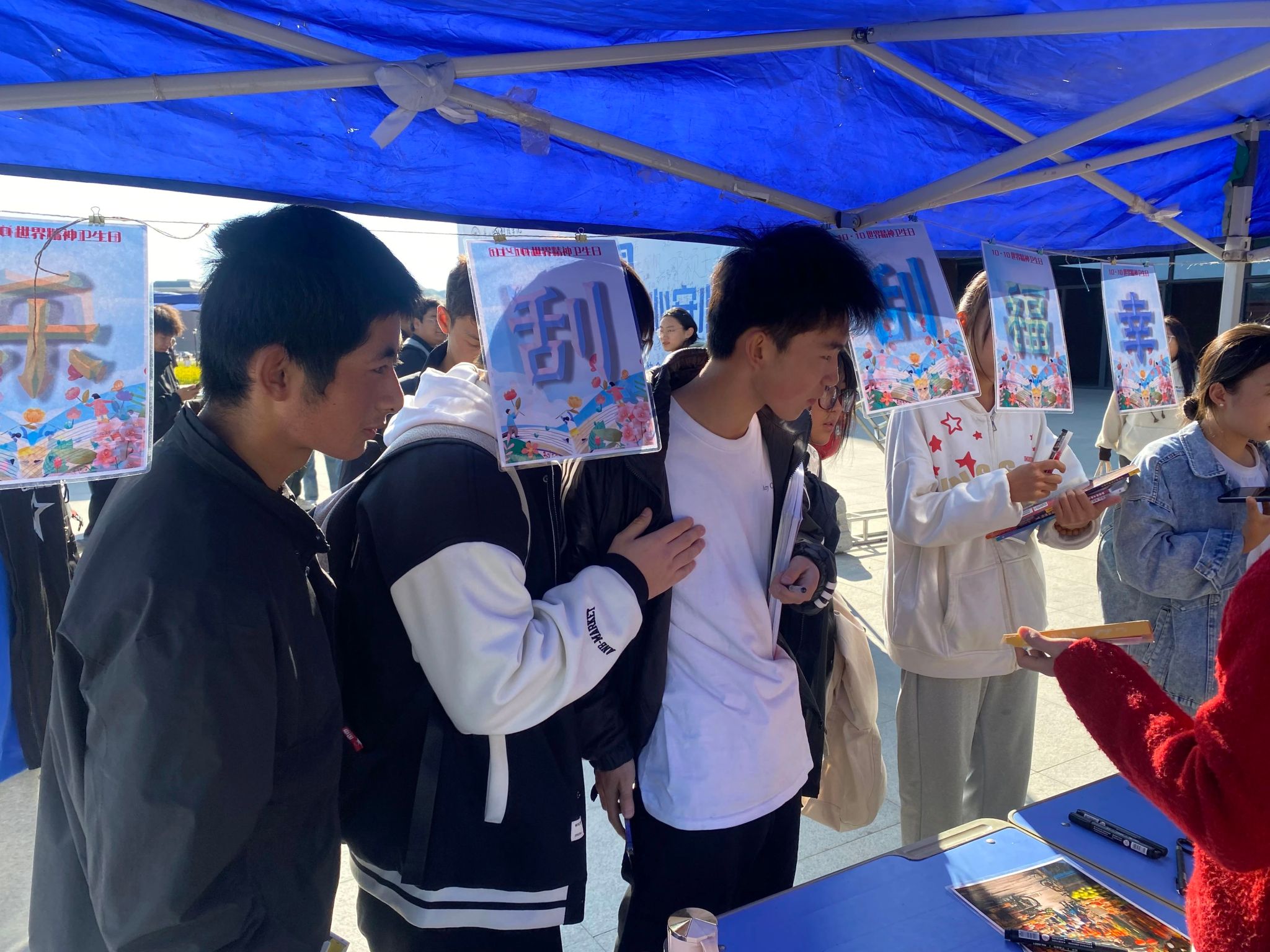 在新建1号教学楼前,现场开展的“世界精神卫生日签名”“秋日来信”“幸福刮刮乐”活动引发同学们纷纷驻足参与。每一个签名都代表着一份对自身心理健康的承诺和对世界精神卫生日的关注。每一份写给自己的时光来信,都是同学们对内心世界的思考与表达。每一张领取到的幸福刮刮卡将记录7天的幸福体验。活动现场的黄同学说:“我今天刮到的挑战是‘现在,请你给自己一个微笑或拥抱,并对自己说一句鼓励的话’,这正是我需要的,我今天随堂考试没发挥好,心情挺郁闷,我想对自己说‘你一直在努力,再给自己一些时间来查漏补缺,加油!’”。幸福不一定需要宏伟大事,而更多的是微小日常,感受当下、积极关注自我。
