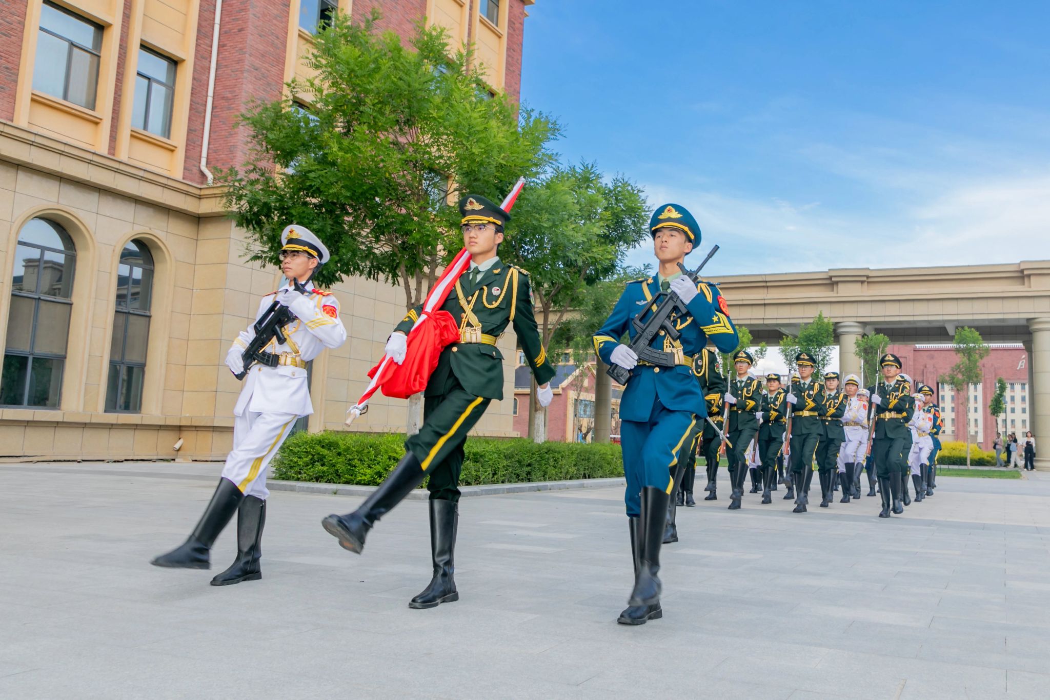 随着主持人宣布升国旗仪式开始,英姿飒爽的国旗护卫队迈着整齐有力的步伐,护送着鲜艳的五星红旗走向升旗台。他们的步伐坚定而有力,眼神中透露出对国旗的敬重和对祖国的热爱。