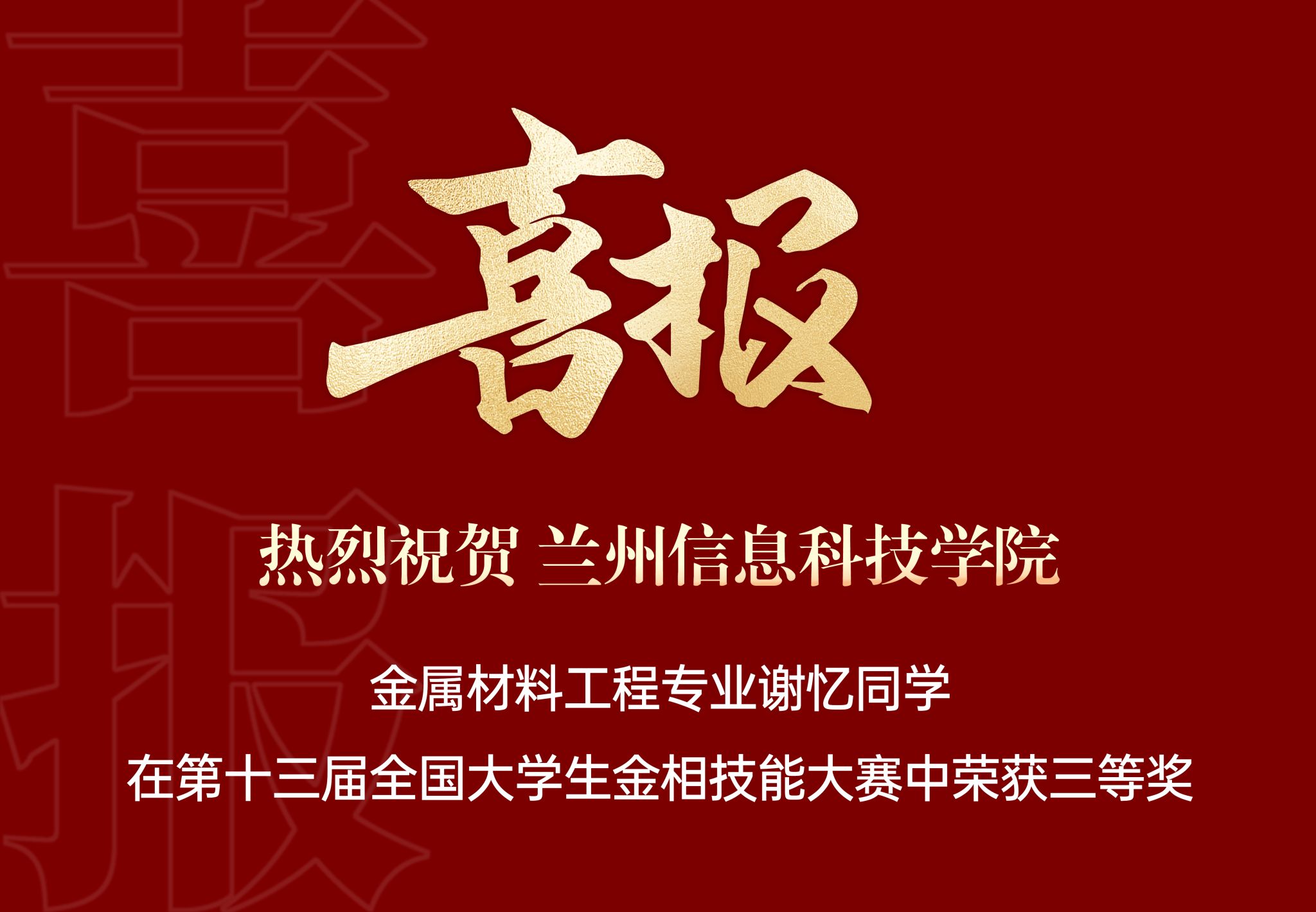 “获得这份国赛大奖,对我来说既是荣耀也是激励。它不仅仅是对过去努力的认可,更是对未来无限可能的期许。心中有梦,脚下有路,我将以次为契机,不忘初心,砥砺前行,继续在专业技能的道路上探索未知,勇于创新,为社会发展贡献自己的力量。”三等奖获得者、金属材料工程专业学生谢忆说道。