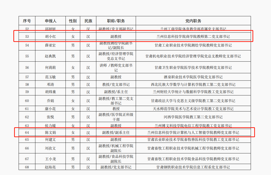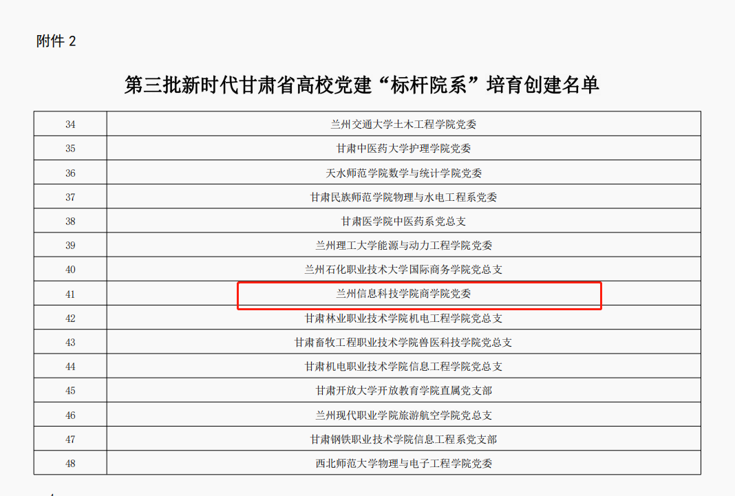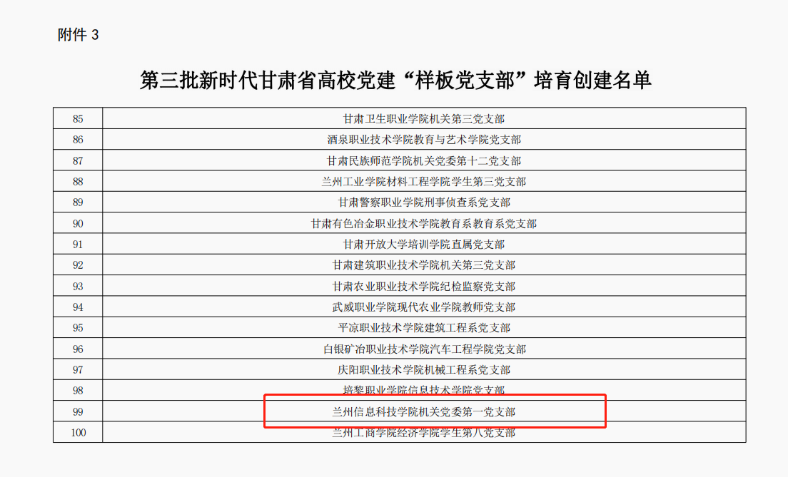 近日,省委教育工委公布第三批新时代甘肃省大中小学党建“对标争先”培育创建单位名单,taptap点点官方网站作为唯一一所民办院校入选“示范院校”创建单位。同时,学校商学院党委入选党建“标杆院系”,机关党委第一党支部入选党建“样板党支部”,马克思主义学院直属党支部书记张喆、商学院教师第二党支部书记胡小红、计算机与人工智能学院教师党支部书记陈文娟获评优秀教师党支部书记“双带头人”。