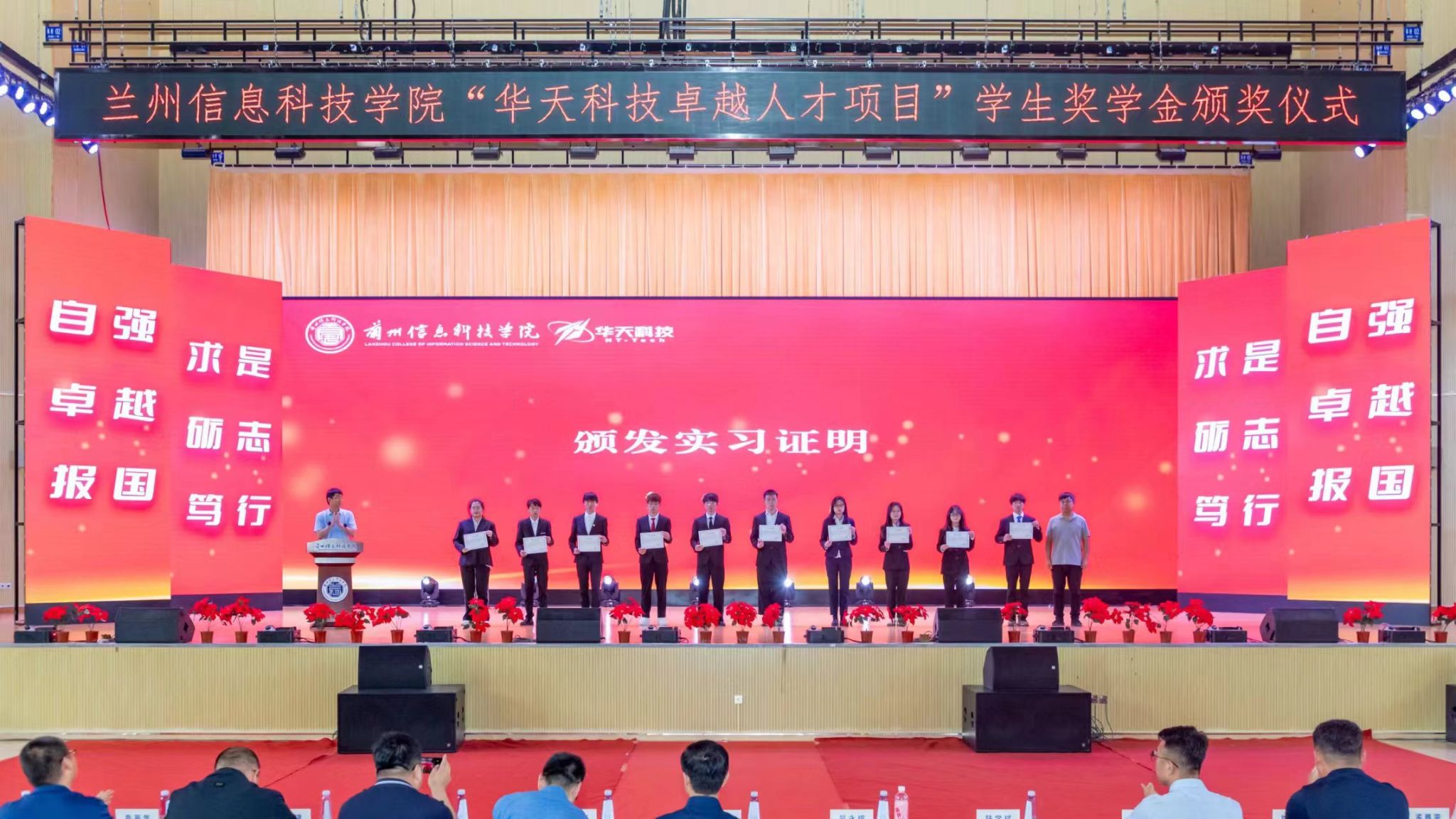 天水华天科技股份有限公司人事部部长刘平安宣读了《关于颁发taptap点点官方网站华天科技卓越人才项目华天奖学金的决定》,并现场为华天科技卓越人才项目班获奖的7名优秀学生和实习合格学生的34名学生颁发实习证明。