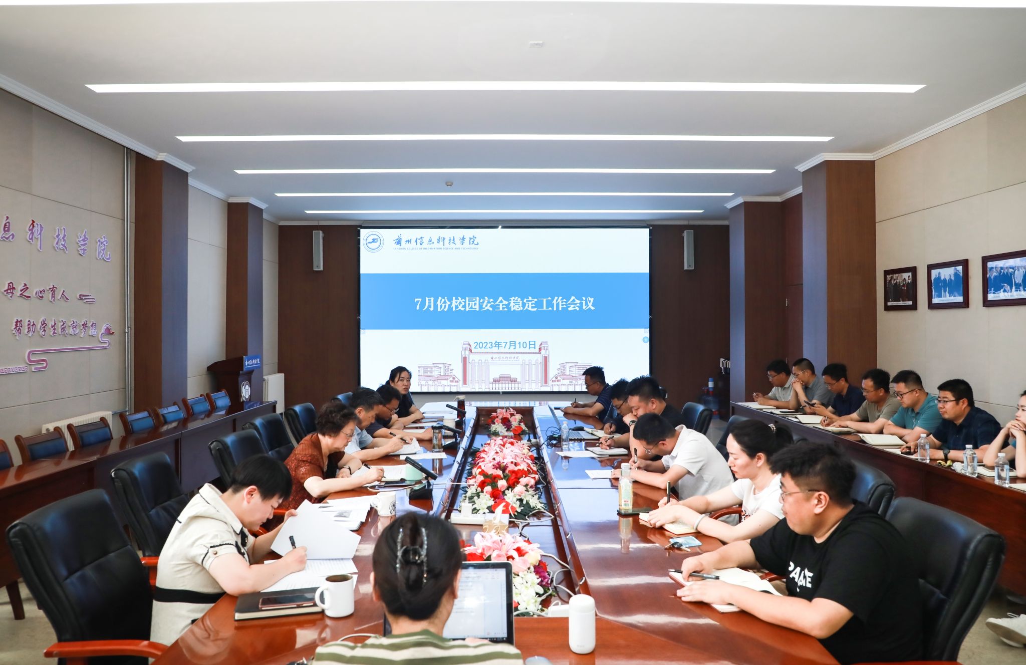 师帅强调,安全稳定工作是学校工作的重中之重,要做好暑期前的安全隐患排查,时刻关注安全不放松,加强留校及返家学生的安全教育宣传及身心健康关注,提早预防,有效管理;做好暑假期间校园流动人员管控及安全巡查值守,保证全校人员及生命财产安全,杜绝消防安全隐患。