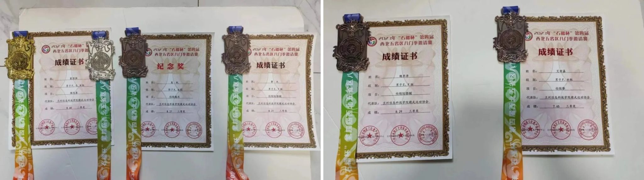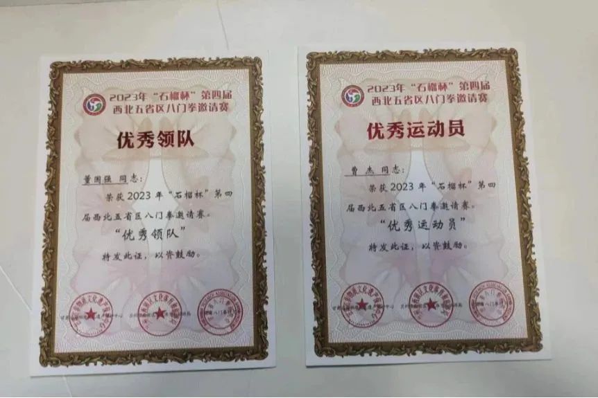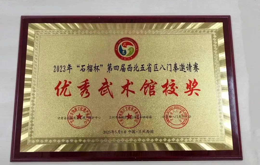 纪念奖四张 喜获“优秀武术馆校”牌匾一块
