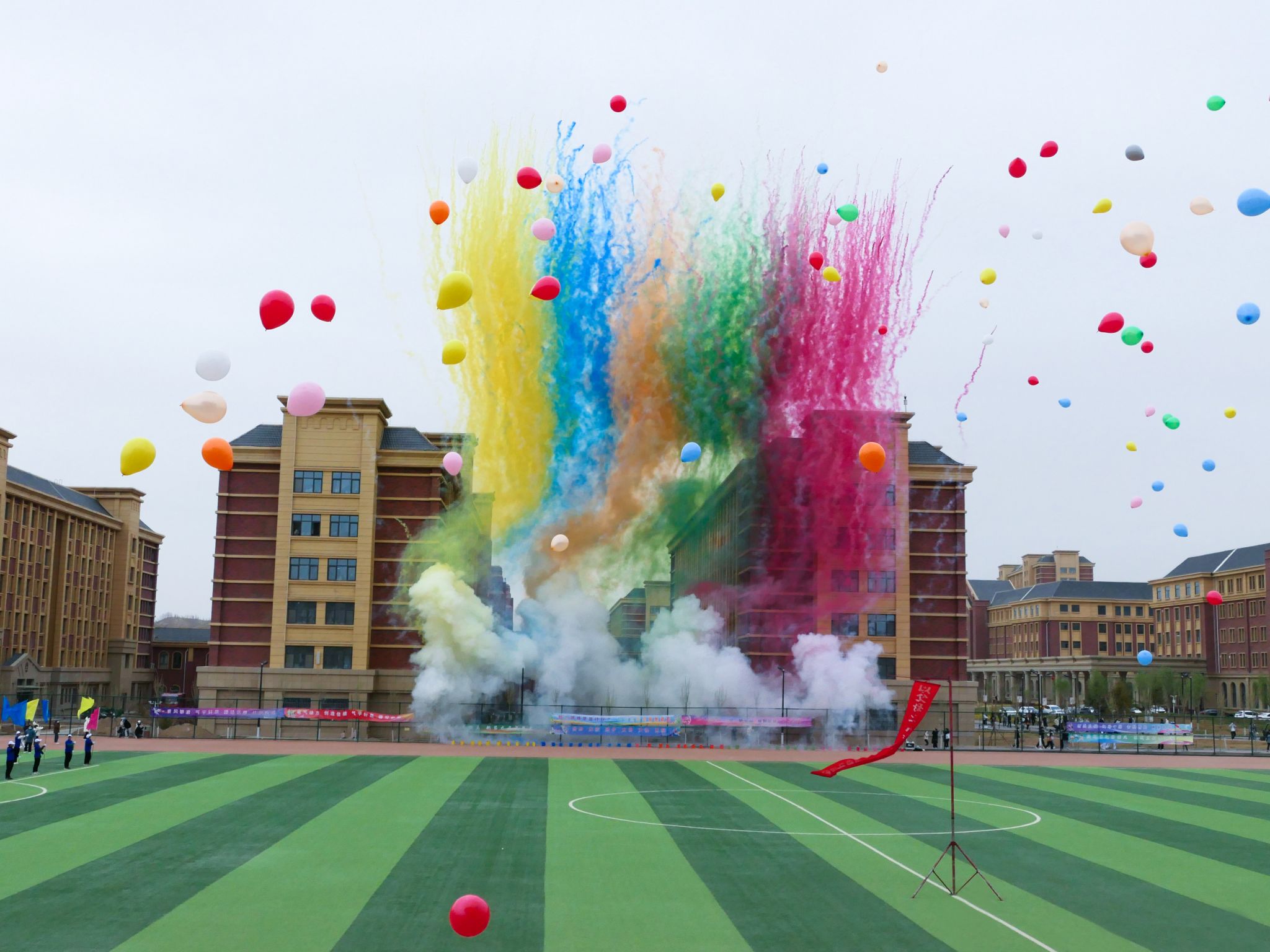 随后,周怀春宣布2023年田径运动会开幕,话音落定,彩色气球随风飘起,彩烟瞬时升腾,五彩斑斓,引得全场欢呼沸腾。
