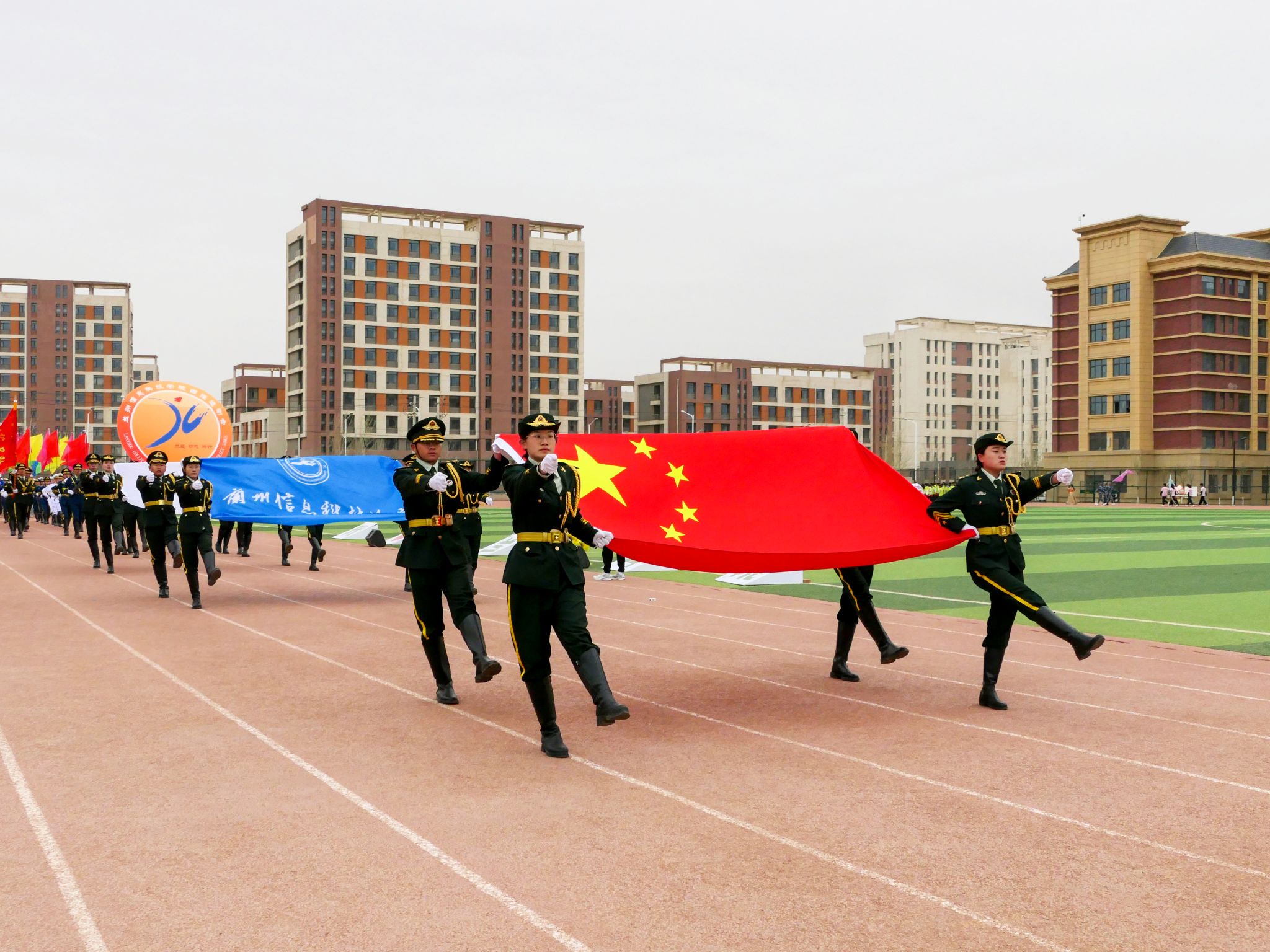 伴随着激昂嘹亮的运动员进行曲,各二级学院、国防后备营、裁判员代表、运动员代表、后勤服务代表、教师代表、演员代表等16个代表方阵依次入场。各方队意气风发、步履坚定依次从主席台前走过,满溢着活力与朝气。方队中活泼可爱的卡通玩偶也成为本次开幕式一大亮点,学校团委全力打造的IP形象小青团、小团团也首次亮相运动场,萌力出击,深受大家喜爱。升国旗,奏唱国歌,悠扬的国歌声中,五星红旗徐徐升起,全体师生精神饱满,庄严肃穆,向国旗行注目礼。