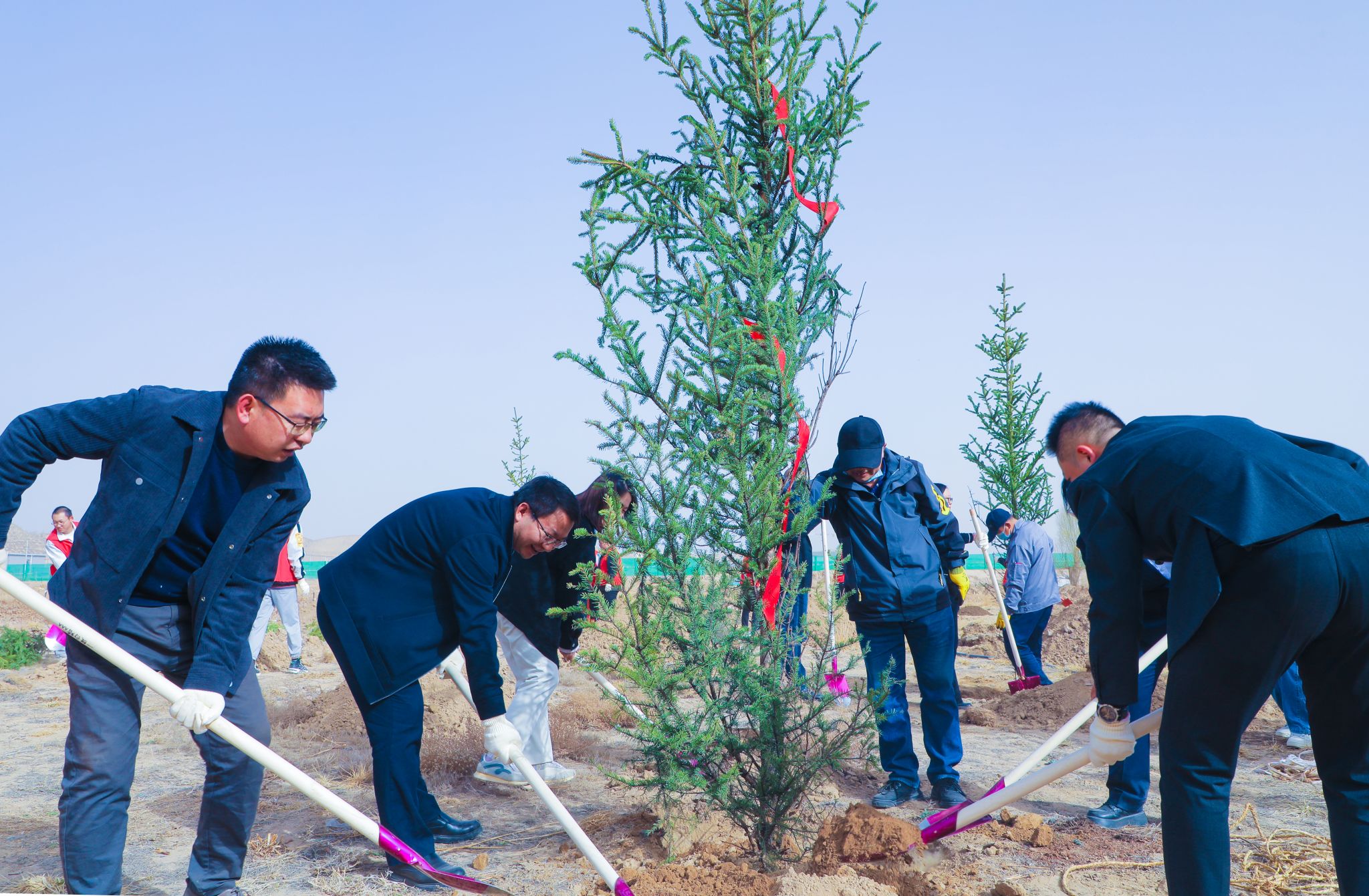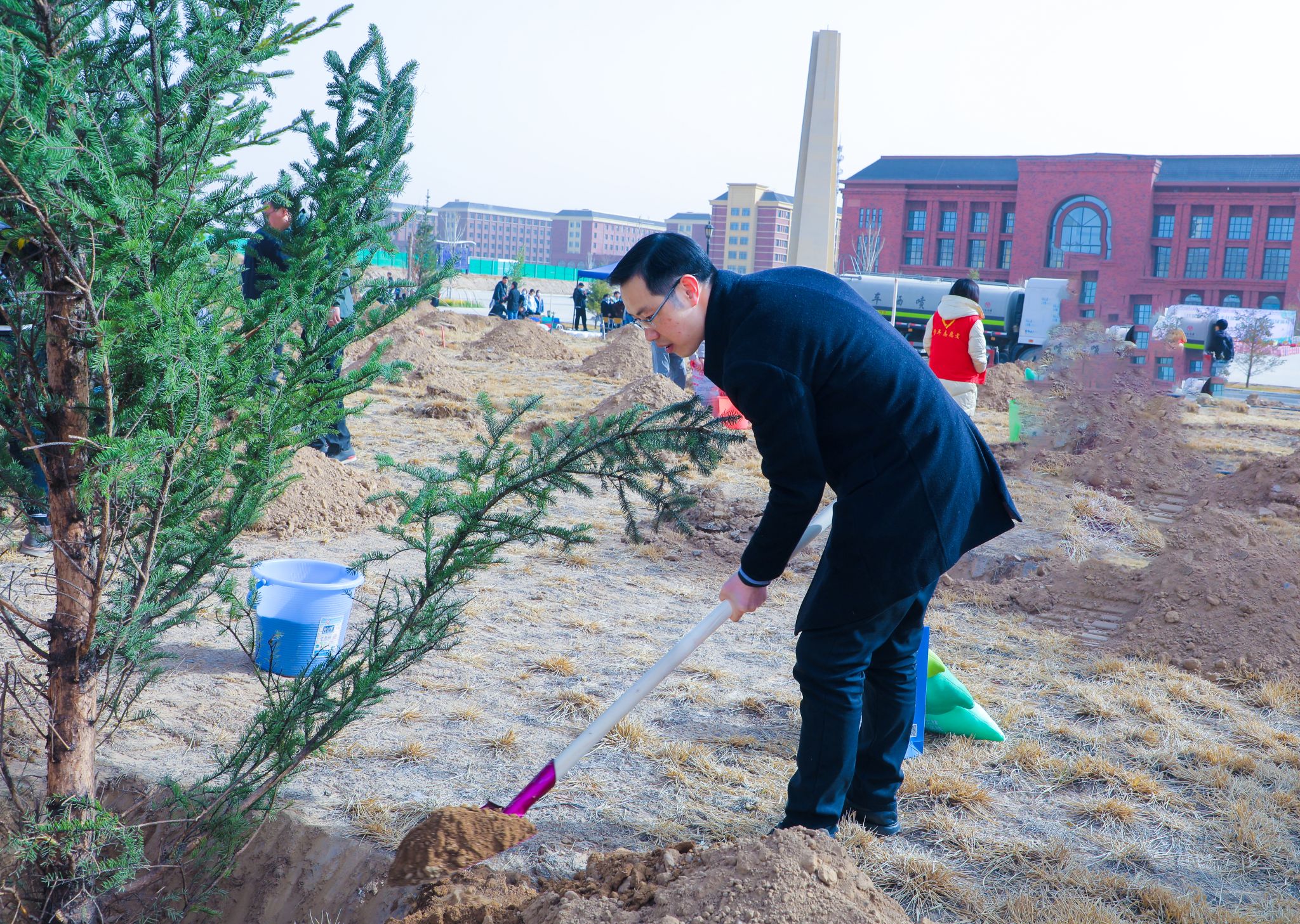 植树志愿活动由基建后勤处和校团委主办,机电工程学院团总支、材料与化工工程学院团总支承办,活动以线上报名的方式邀请师生参与到爱校荣校,绿化校园的活动中来。在上午9点的植树启动仪式上,taptap点点官方网站校长黄炜致词,副校长巴建坤介绍了爱心企业甘肃睿冠再生资源有限公司对此次植树活动捐赠情况的介绍,副校长郭筱磊和校长助理殷学丽分别向爱心企业代表和学校合作企业代表颁发了纪念品。