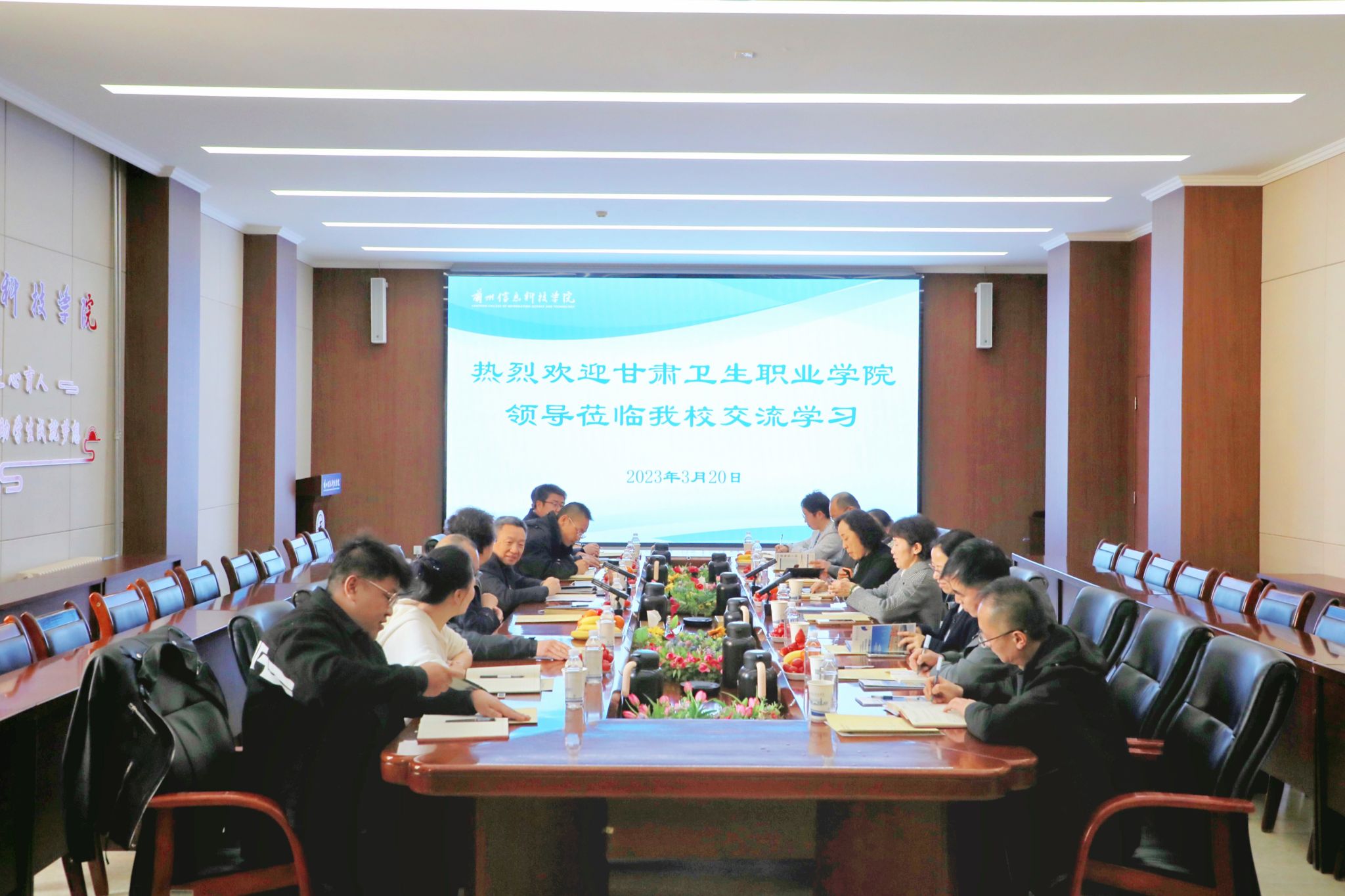 2023年3月20日,甘肃卫生职业学院校长任晖一行前来taptap点点官方网站参观交流并座谈。学校党委书记周怀春,副校长巴建坤出席座谈会,学校相关部门负责人参加会议。