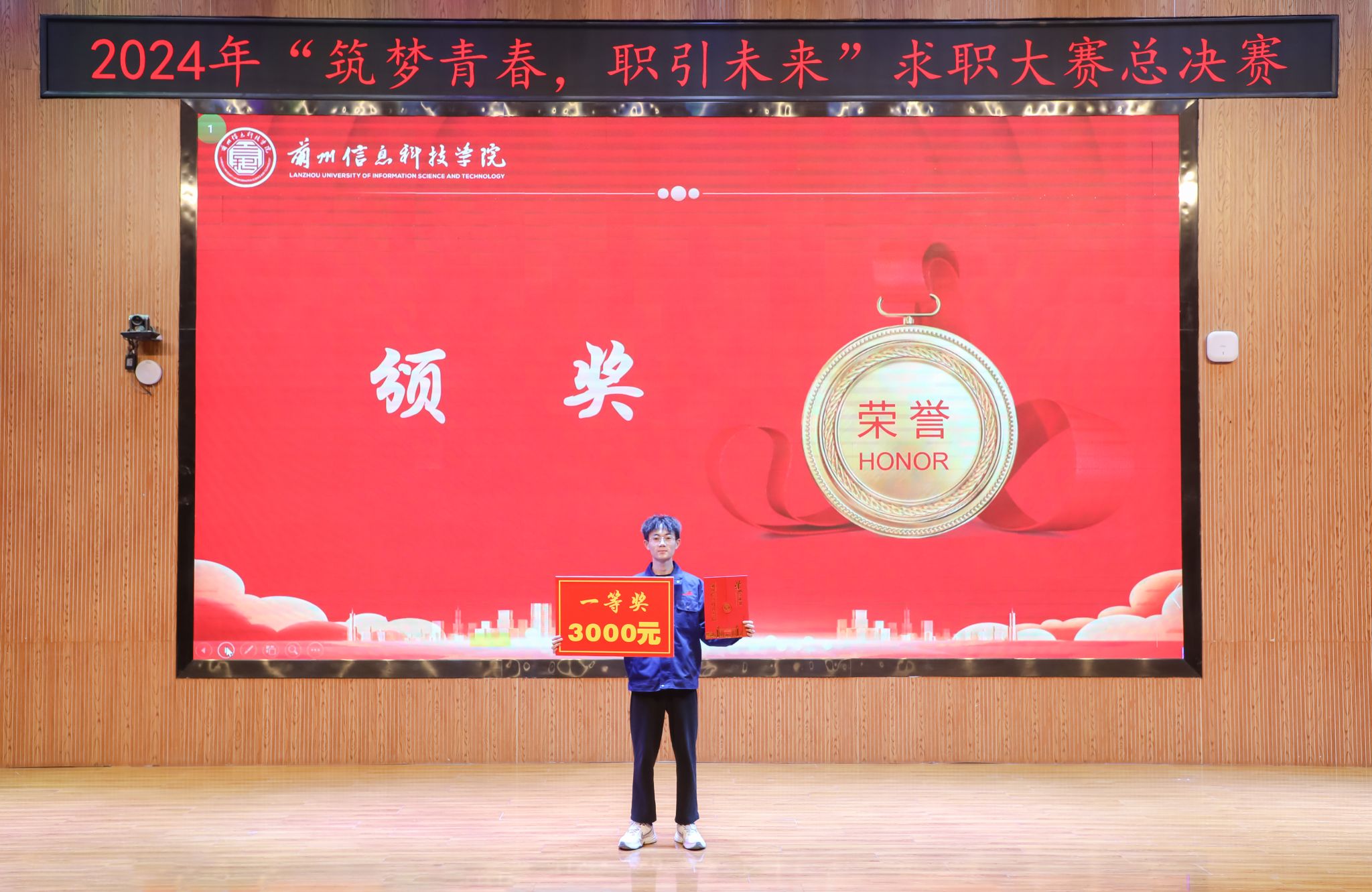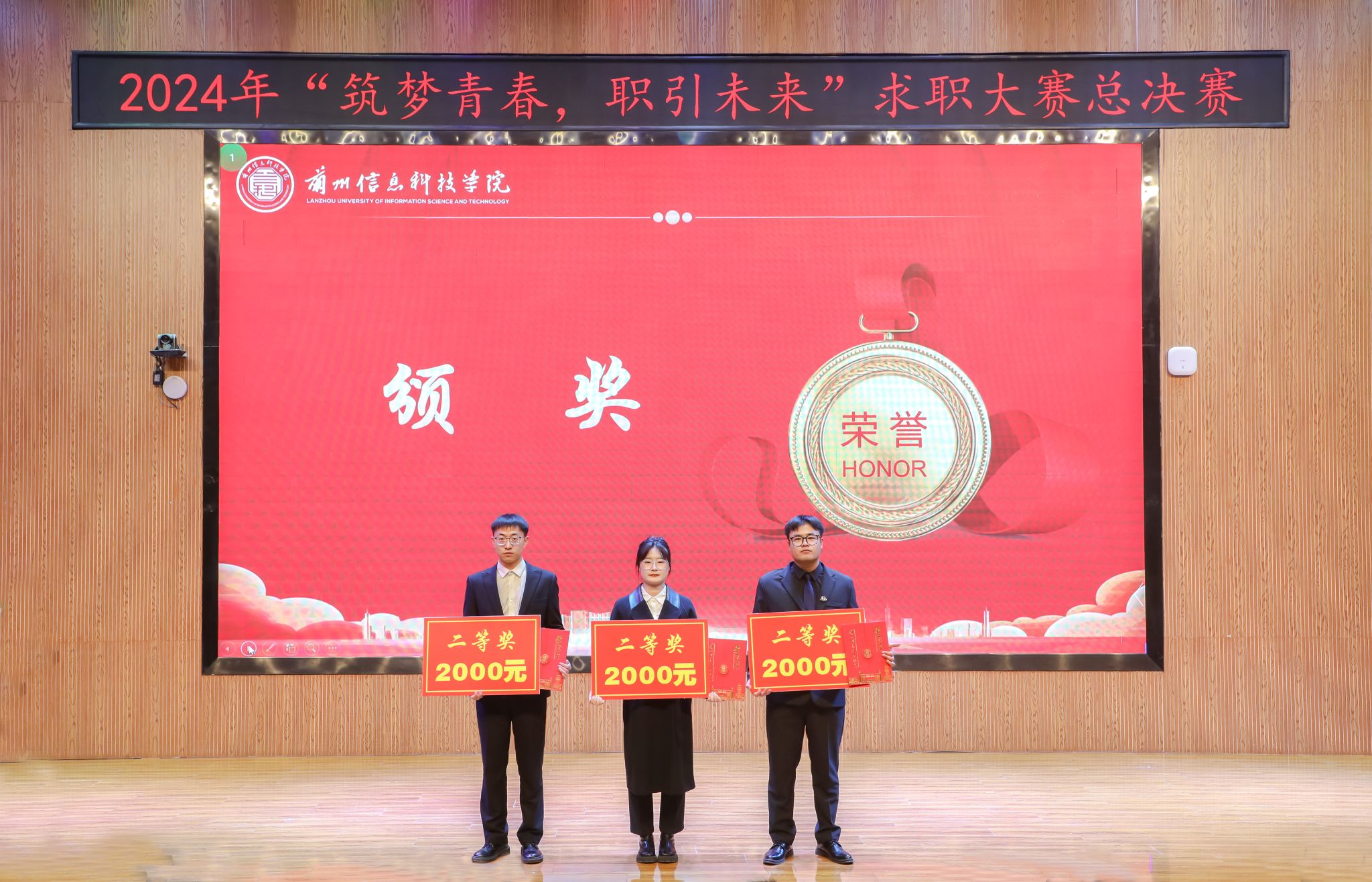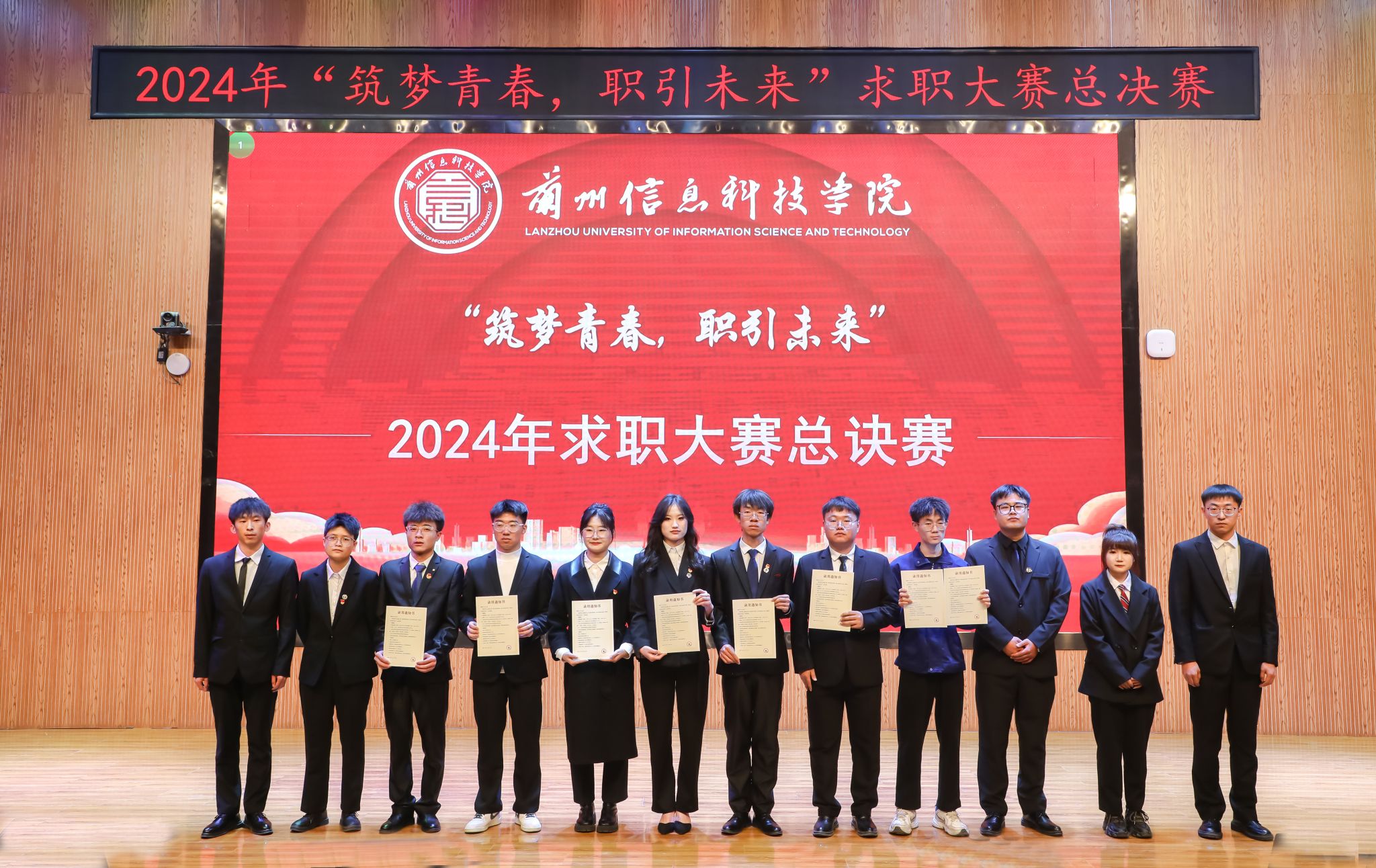 决赛环节设主题陈述、评委提问和天降offer环节,12位选手以饱满的热情,积极的心态,通过自我介绍、职业选择、能力证明、发展规划等环节,展示了个人岗位胜任力和就业竞争力,企业评委和专家评委从不同的维度对参赛选手进行了现场提问,根据选手的现场表现和参赛作品的呈现进行现场打分,并为表现优异的选手发放了录用offer。经过激烈角逐,智能装备学院2025届机器人工程专业毕业生林向阳获得一等奖,土木工程学院2025届土木工程专业毕业生李珂等3位选手获得二等奖,计算机与人工智能学院2025届软件工程专业毕业生朱兴娃等6位选手获得三等奖,商学院财务管理专业毕业生曹玉等40位选手获得优秀奖。陈艳丽等10位教师获得“优秀指导教师”荣誉称号,商学院学生发展中心获得“优秀组织奖”。