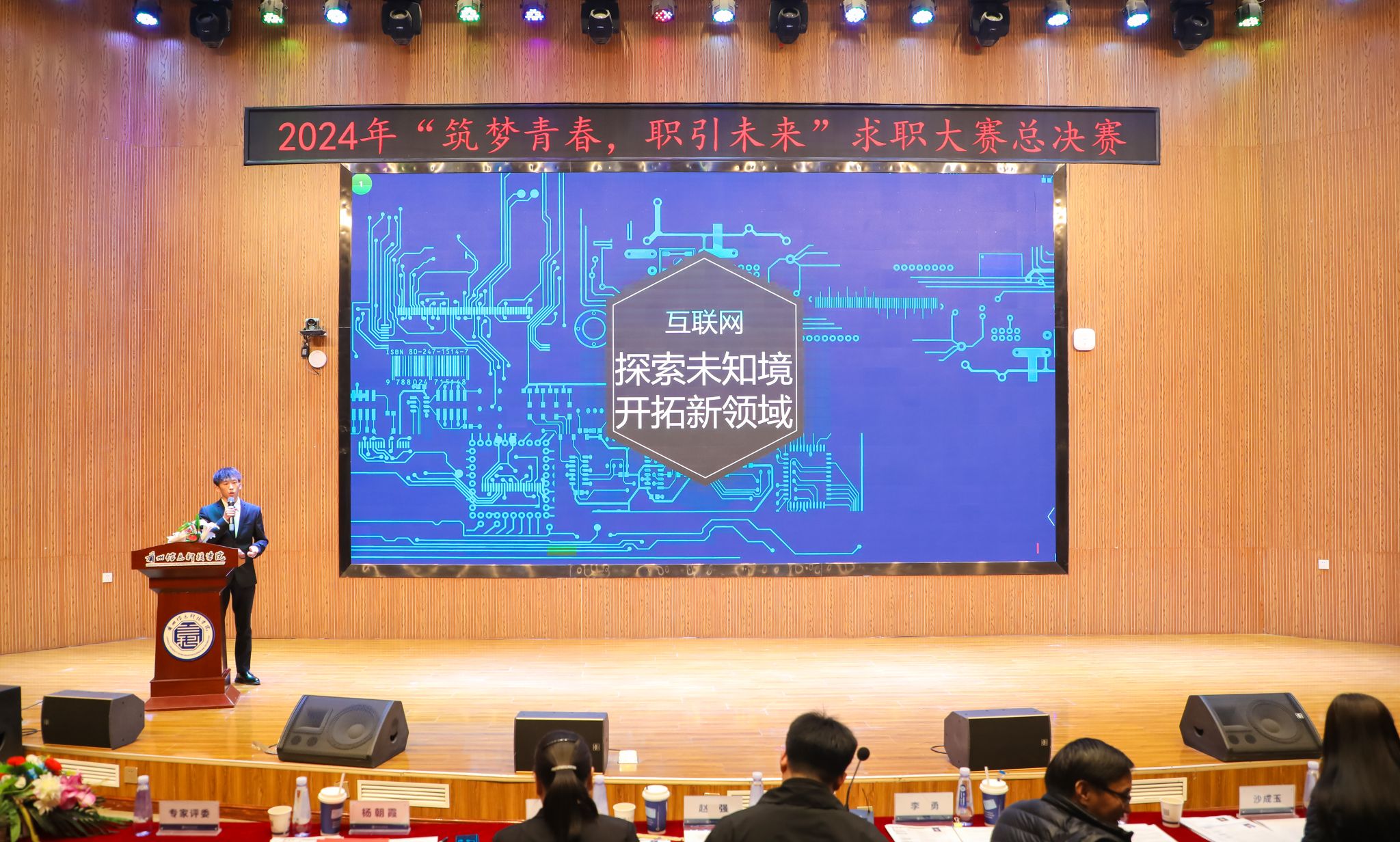 校长助理朱明敏在大赛上致词,他指出促进高质量充分就业,是新时代新征程就业工作的新定位、新使命,要把毕业生就业工作摆在更加突出的位置。举办求职大赛,是推动学校大学生就业指导与生涯规划课程实践化、应用化的重要载体,是提高毕业生就业核心竞争力的关键举措,也是展示学校就业育人成果及毕业生求职能力的一次盛会。他要求同学们根据自身需求和特质,认识工作世界,清晰职业定位,明确未来发展方向,赛出水平、赛出风格、赛出精神,并宣布大赛总决赛正式开始。