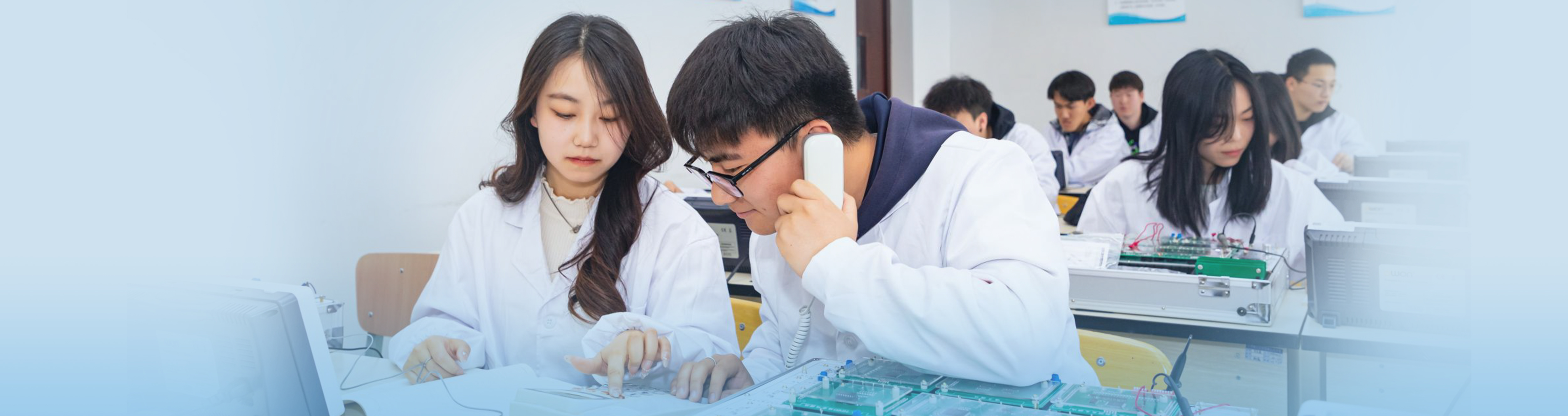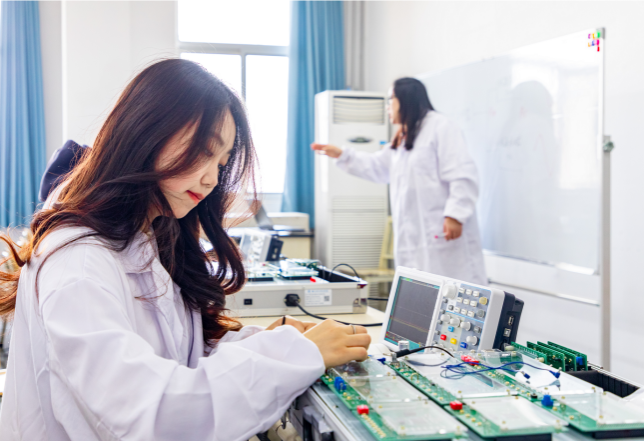 通信工程专业拥有多个满足专业需求的实验室,包括电工电子实验室、FPGA实验室和通信原理实验室等。实验室主要承担《电路分析》《模拟电子技术》《数字电子技术》《通信原理》《FPGA原理及应用》等课程教学。实验室主要开设的实验项目包括叠加定理、共射极放大电路、集成运算放大电路、直流电源、模拟通信系统和数字通信系统等,学生可以在实验室内进行真实的电路实验、学科竞赛等多样化的学习活动,以提升学生的动手实践能力和解决问题的能力。